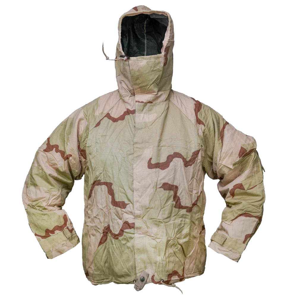 USGI 3 Colour Desert NBC Jacket in 3 Colour Desert camouflage. Constructed from a 50% nylon / 50% cotton outer shell with a protective liner. Features a full front zip with storm flap, integrated hood with drawcord adjustment, adjustable cuffs, and hem drawcord.