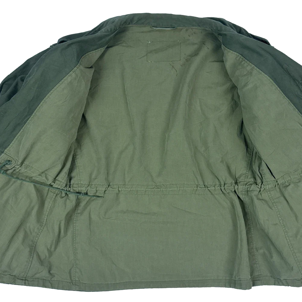 USGI M-1943 Field Jacket in size 34R. This is the original four-pocket US field jacket design. It has lined hip pockets and does not have attachment points for a liner.