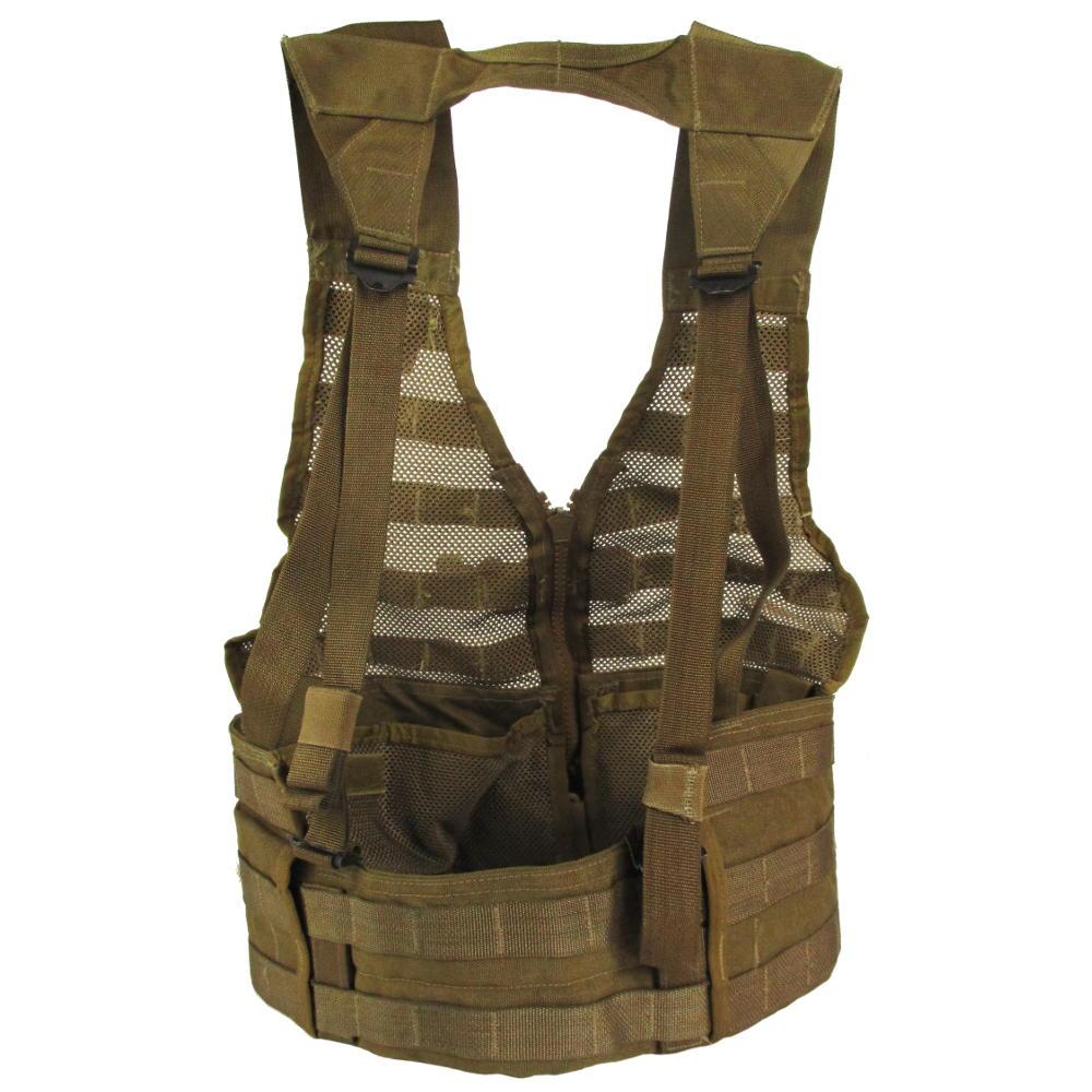 This vest is Genuine US Army Marine Corps surplus. It is a component of Modular Lightweight Load-bearing Equipment (MOLLE). It features the popular modular webbing attachment system allowing numerous components to be carried on the vest. Attach any MOLLE compatible surplus accessories or simply use carabiner clips to attach items. The vest? is durable, rugged and versatile making it ideal for fishing, hunting, camping, tactical exercises, paintball or airsoft. The mesh front and open back design keep this vest extremely lightweight and highly manageable.