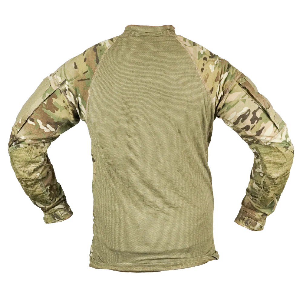 USGI UBAC shirt in OCP (Multicam) camouflage. Long-sleeve combat-style shirt with a mixed-fabric construction typical of UBAC garments.