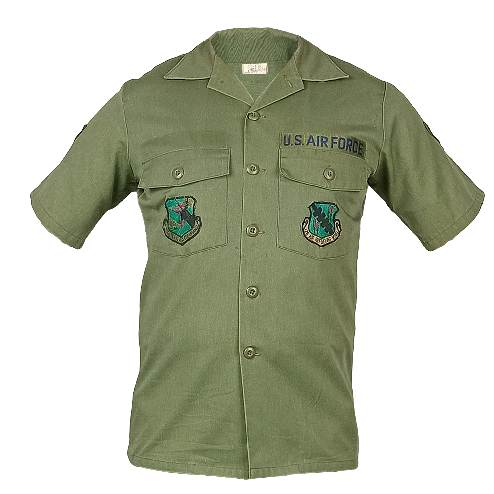 These shirts are a good option for getting your chores done in the warmer months or back in 'Nam. As all US branches used these at some point, the patches and amount will vary (some will not have any patches).