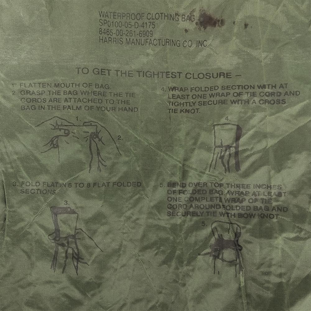 US Army Soldiers would typically put all their spare clothing and anything they need kept dry in one of these bags, then lump it in their ALICE pack so it stays dry no matter what. Having said that - this batch they are knackered! Well used, some even have light shining through the rubber layer and naturally decayed seal tape. Some with a bit of TLC might be able to provide a bit more life but otherwise are best suited to being a dirty washing bag or the likes!