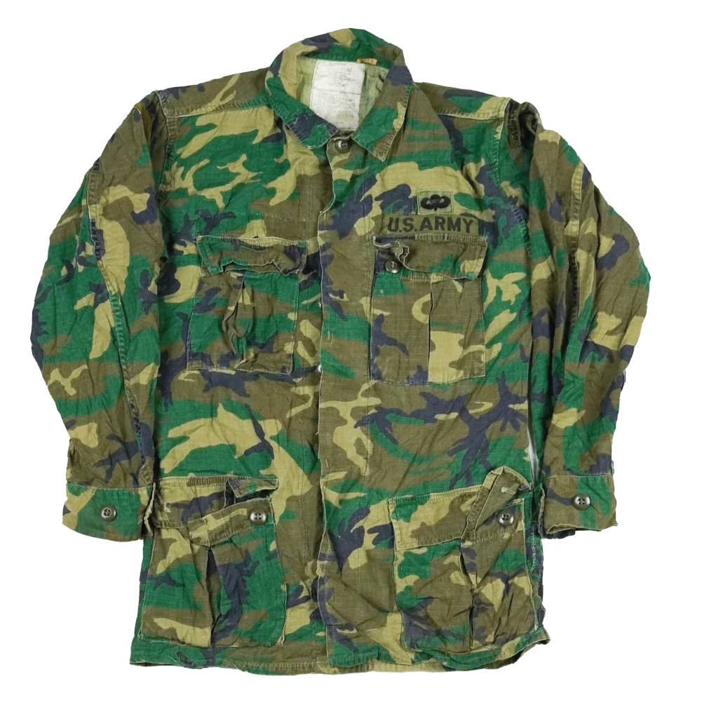 USGI RDF ERDL ripstop shirt in Small Regular size. Features the ERDL camouflage pattern and lightweight ripstop construction. Manufacture date is 1981.