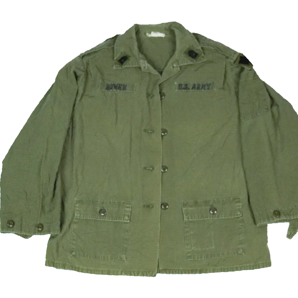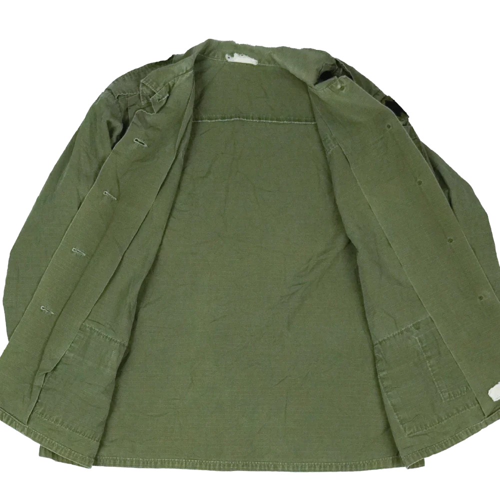 USGI women’s OG-107 ripstop field shirt. Features button-closure hip pockets, a left sleeve pen pocket, and adjustable button cuffs.
