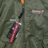Alpha Industries MA-1 style flight jacket in olive, Medium sizing. Classic bomber cut with ribbed collar, cuffs and waistband, and full front zip closure. Embroidered with the company logo of Convergint Technologies, a US based security firm.