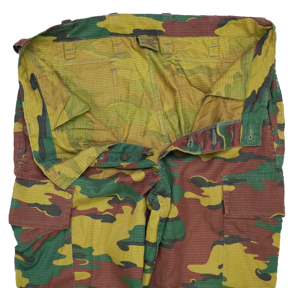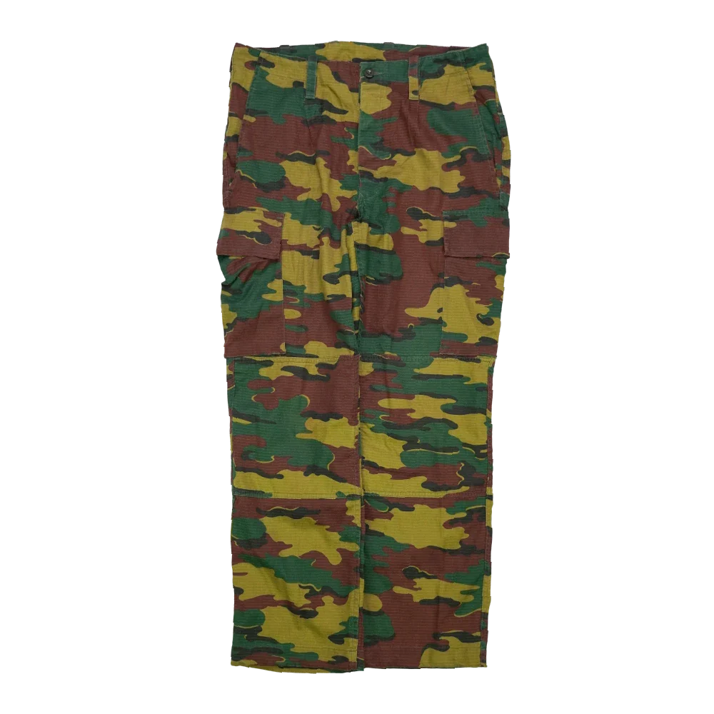 Belgian surplus ripstop trousers in Jigsaw camouflage pattern. Made from durable ripstop fabric with a standard trouser cut.