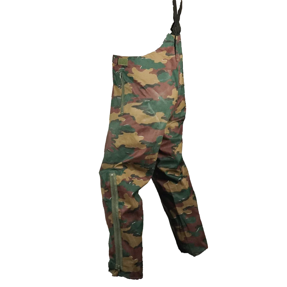 The trousers are finished in the Belgian jigsaw camouflage pattern and are intended to be worn over other clothing.