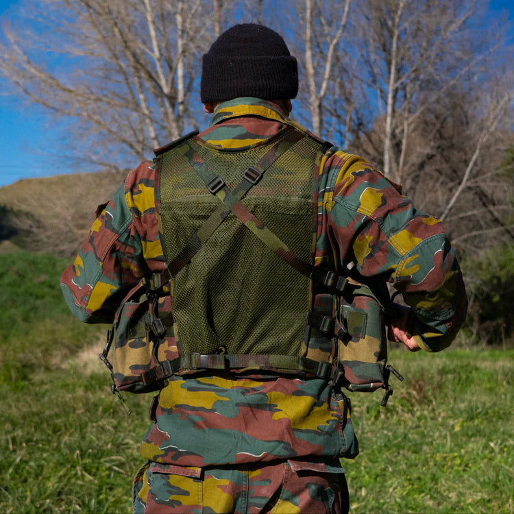 - Adjustable waist and back straps (some may be crossed at the back as pictured, a field modification by soldiers)