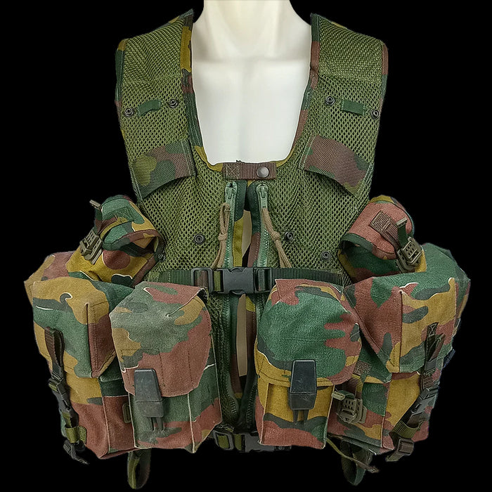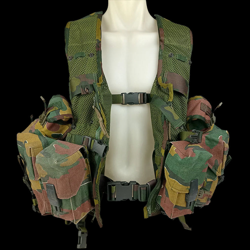 These are loaded with storage. We have a good handful of vests without ammo pouches but all vests have 4, yes four, utility pouches. These happily carry canteens or whatever you may want to lug about! For vests with mag pouches, these can hold 3 mags each and have that oldschool tension peg closure, akin to those on ALICE magazine pouches. All vests have grenade pouches too, with speedy Spanish fly type closures. Two vertical chest pockets have pistol holsters in each side, in case you need ''one for each of ya'', like some kind of mad Belgian Doc Holiday (...or to suit your dominant hand). Vests may accommodate additional pouches via the webbing loops to each side of the upper chest, or to the rear-most utility pouch sides. Geared up to the gills!