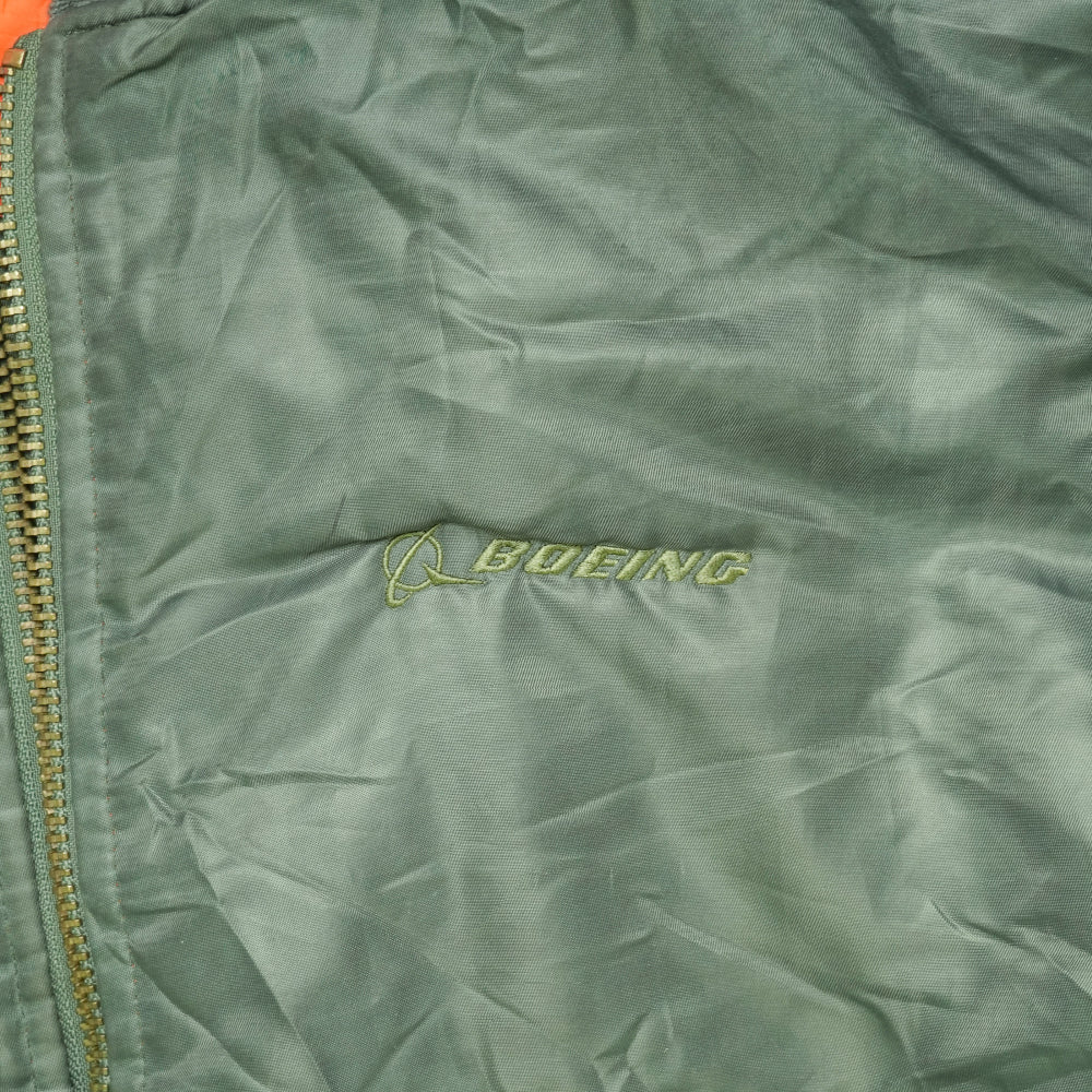 Olive MA-1 style bomber jacket manufactured by Rothco with Boeing branding. Classic flight jacket design with a zip front and ribbed trim.