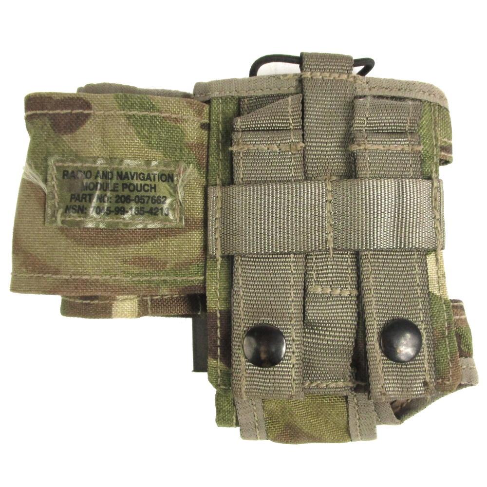 This is the current issue British Army pouch used to carry the Personal Role Radio (PRR) - the standard communication system for infantry soldiers. A side compartment fits the locator beacon which connects to the radio through the bottom of the pouch. This side compartment features a hook & loop flap for covering the controls and protecting them from dirt. An elasticated snap dome secures the radio from the top. MOLLE attachment loops on the rear allow this pouch to be securely attached to a vest. British soldiers would most likely attach this to their Mk IV Osprey combat vest.