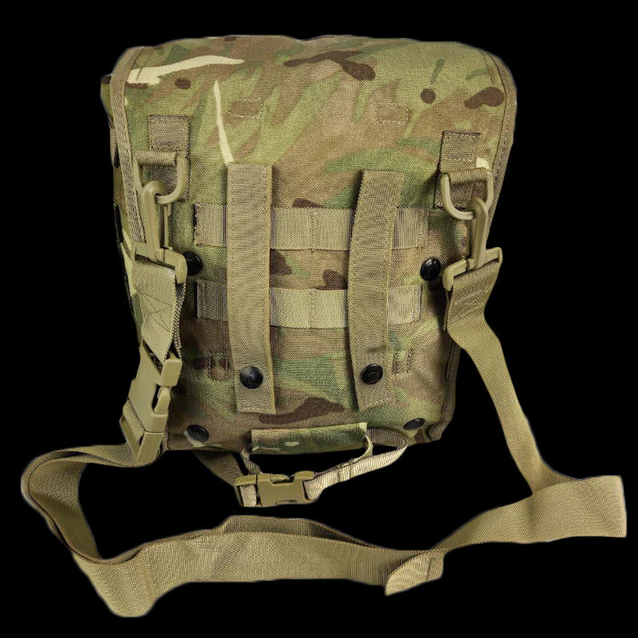 This genuine British pack is given to any soldier issued a gas mask. It features a main compartment designed to carry the gas mask and its components. Soldiers attach these packs to their thigh, strapping it around their waist. Our latest batch may not come with the bottom, smaller strap. Although this is the preferred military method, the pack also functions fantastically as a side bag.