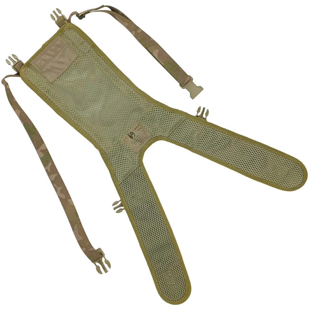 This yoke is designed to clip to British PLCE Bergen side pouches and make a smaller bag. Lightly padded shoulders and a mesh back panel provide comfort to the user. Attach one or both side pouches, depending on how much gear you need on recon!