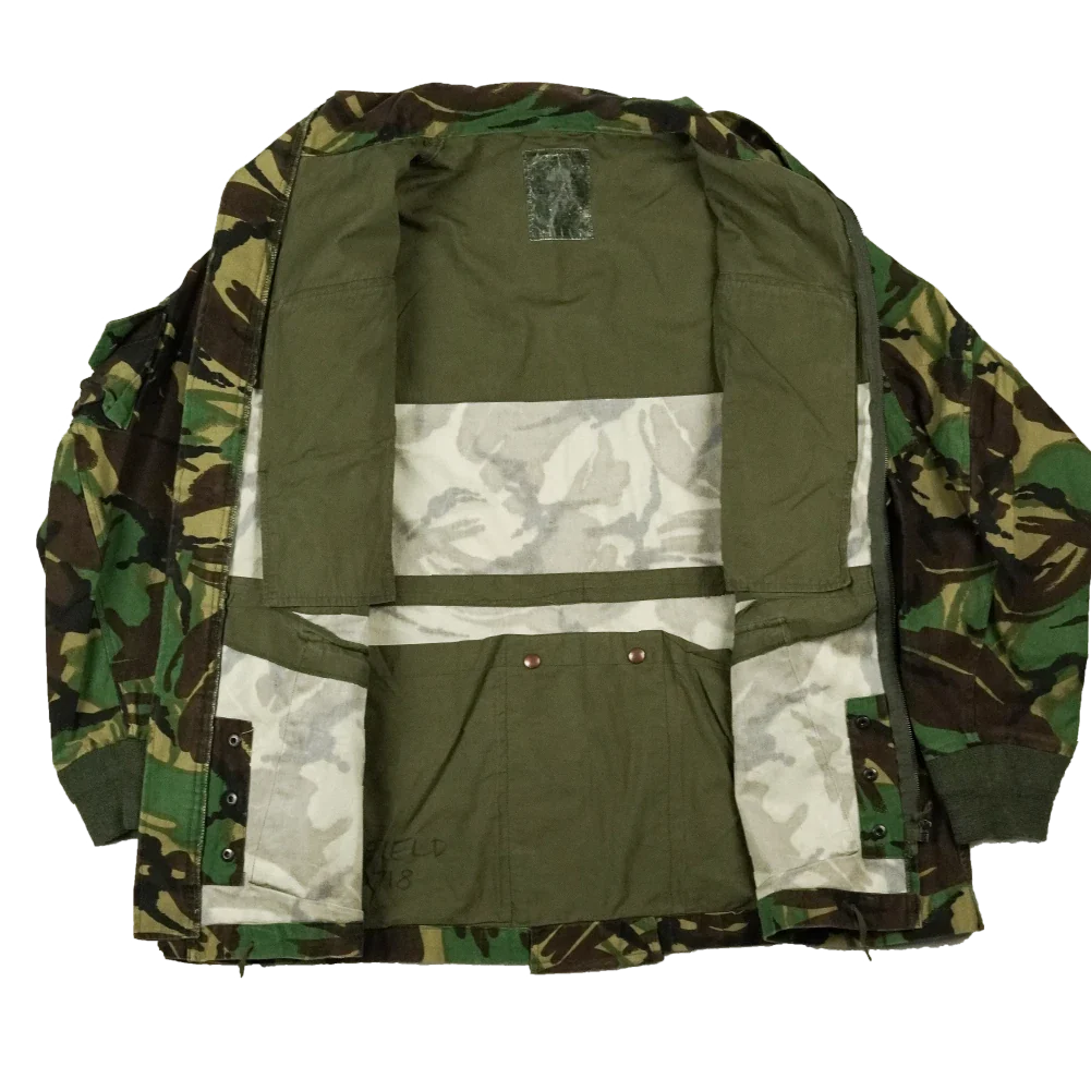 British Army Parachute Smock combat jacket. Military issue smock-style outerwear constructed from camouflage fabric.
