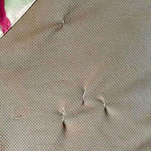- Middle section is a plain olive green moisture wicking material