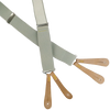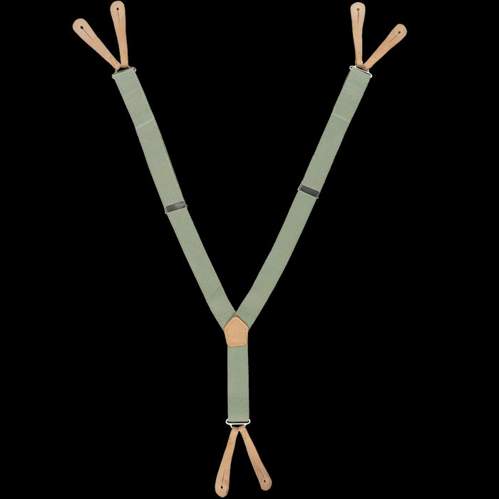 In grey-blue, these British Forces braces (or suspenders) require six attachment buttons on the trousers you want to hold up. The adjustable and elastic Y-shape design has durable, soft leather attachment points and silver toned hardware.