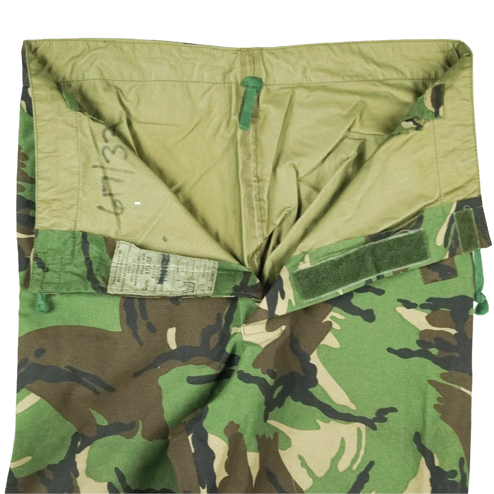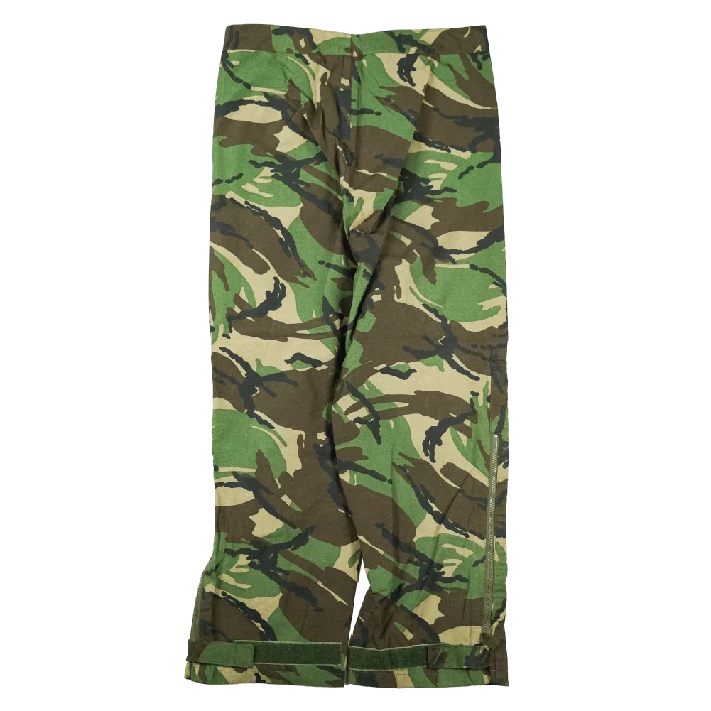 British military-issue MVP rain trousers designed as an outer waterproof layer. Constructed from moisture vapour permeable fabric with full lower-leg zip openings for easier donning over footwear.