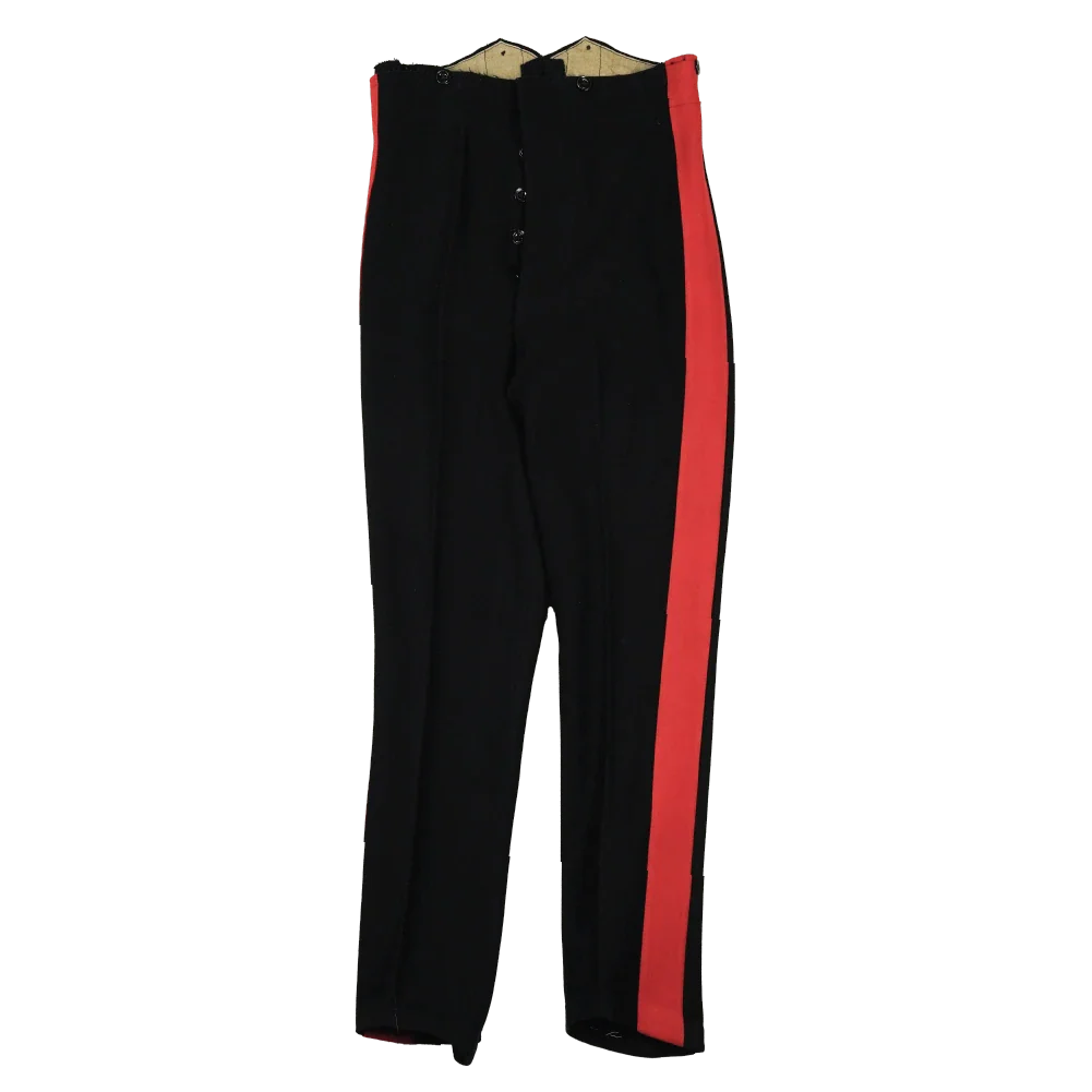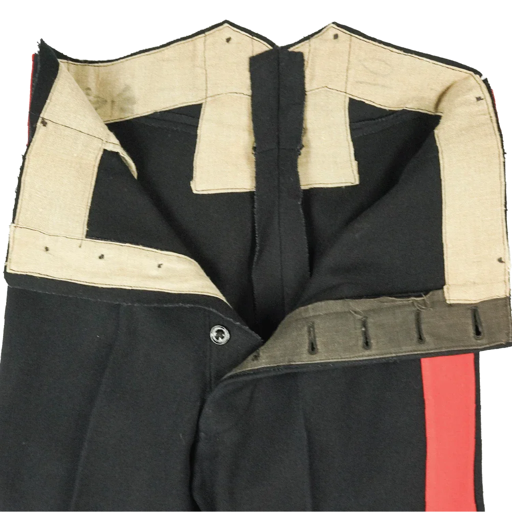 British military dress trousers attributed to the Royal Engineers from the First World War period. Constructed from wool and finished in a formal dress style consistent with the era.