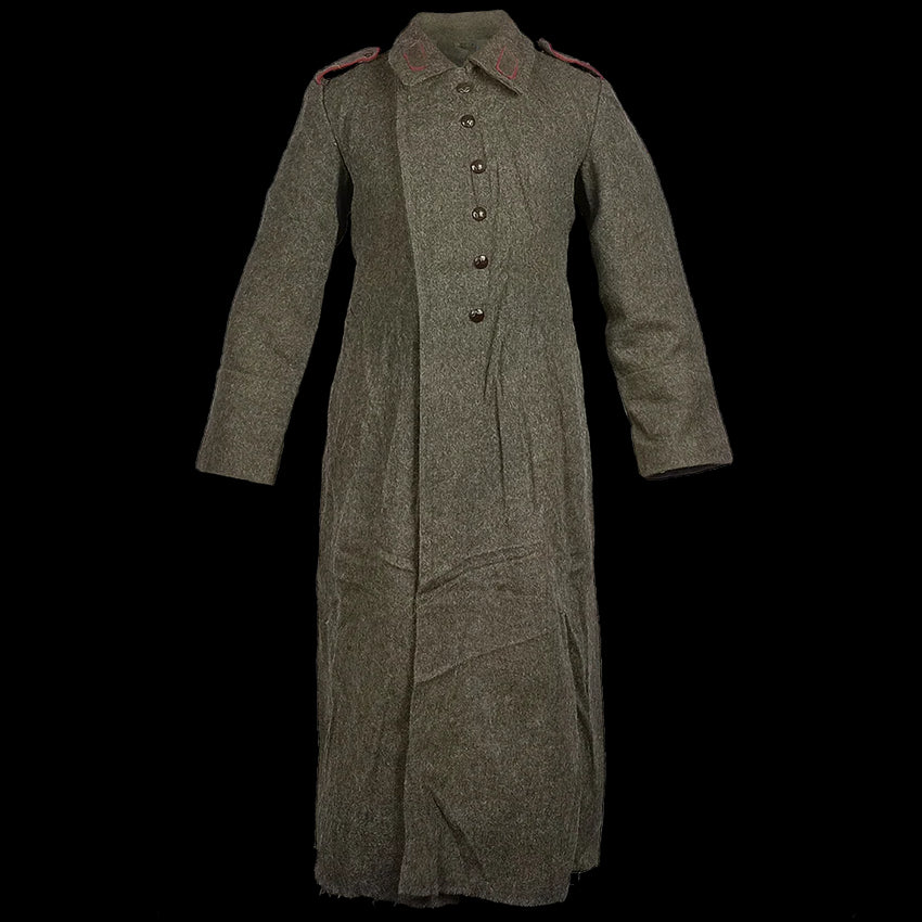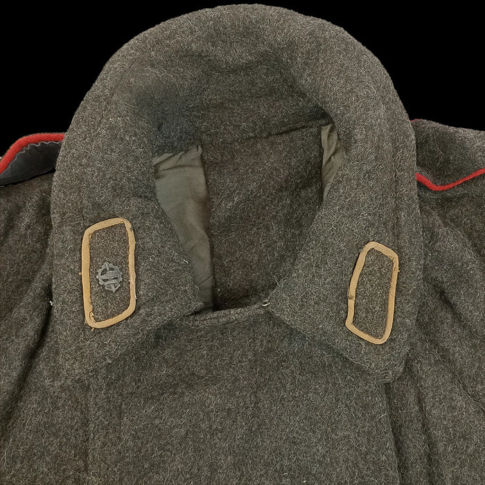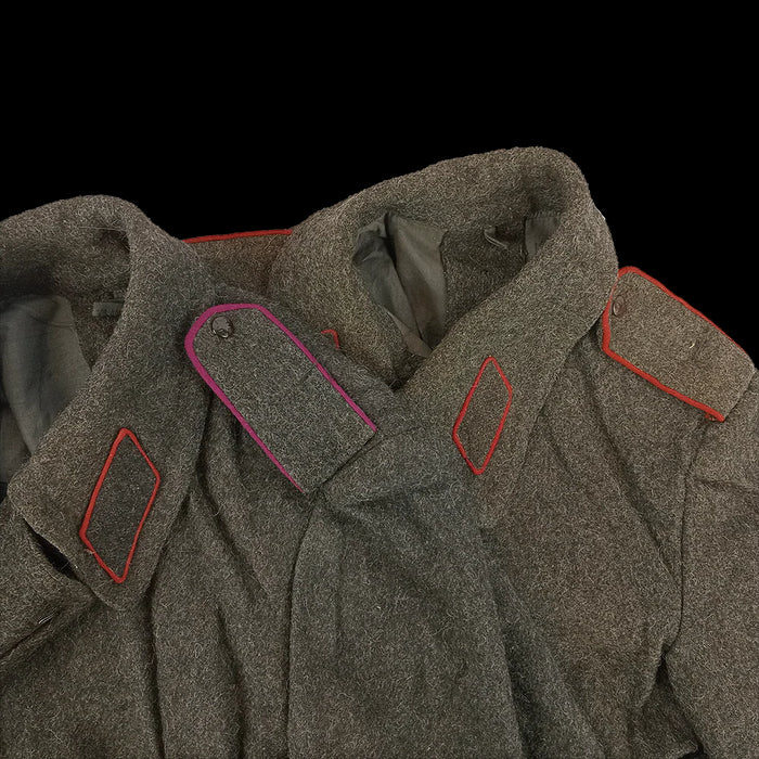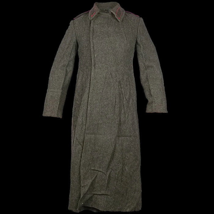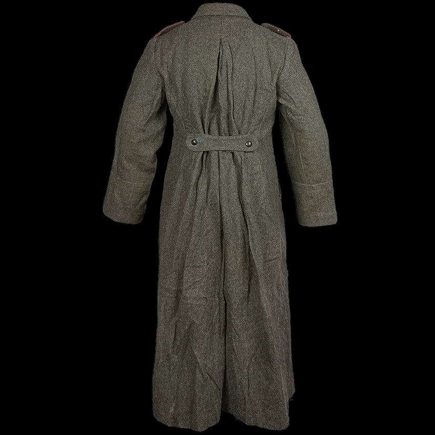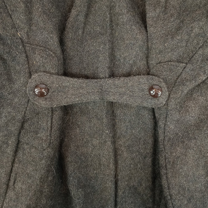 Inspired by the nice coats Bulgaria's mates over in the the Soviet Union had, these have an offset hook & eyelet closure, long length, big collar and pleated back with buttoned fastener. Like our usual batch of charcoal coloured Bulgarian overcoats, these were issued during the Cold War era, extending down past the knees in a warming wool blend.