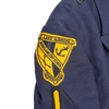 - Embroidered shoulder patches on both sleeves