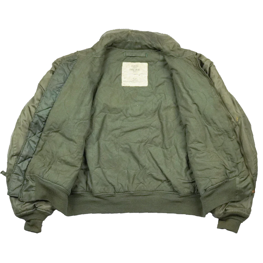 The CWU-45/P men's cold weather flyer's jacket is a U.S. Air Force flight jacket designed for cold conditions. It features a front zipper with storm flap, knit cuffs and waistband, and two large front pockets.