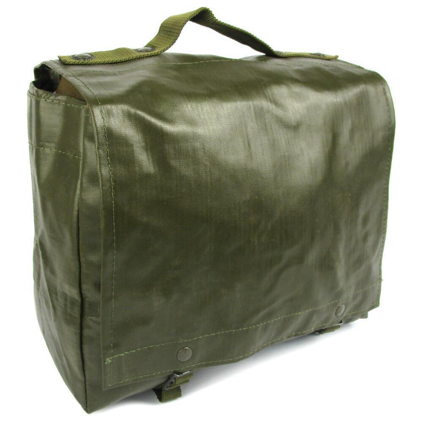 This durable vinyl shoulder bag from the Czech army is a fantastic piece of kit. A great pack for the outdoor explorer, with hard wearing vinyl material that is long lasting and water resistant. Shoulder straps and carry handle make transportation easier while extra tabs allow for webbing set attachment.