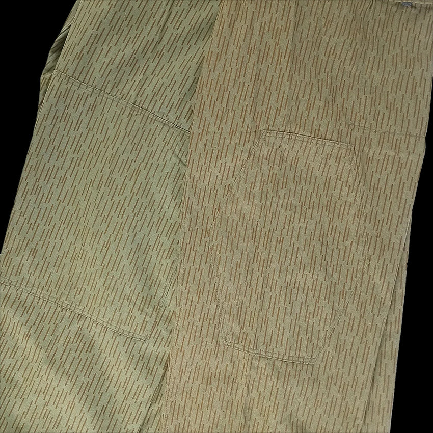 These unused East German combat trousers were issued to the Nationale Volksarmee (NVA) from 1968 to 1990. Featuring the distinctive Rain Camo pattern (Strichmuster), inspired by WWII German designs like Splittermuster and Sumpftarn. Due to the range in manufacture, have a mix of models. Some may have no knee reinforcement, square reinforcement or polygonal reinforcement, seat reinforcement and some may have shrouded cargo buttons and others not. These will be picked at random.