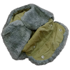 The Czech Army winter hat features an olive green exterior with a soft grey faux fur trim, combining military practicality with a classic look. Designed for cold weather, it offers excellent warmth and comfort. The ear flaps can be worn up for a streamlined style or down for added protection against wind and cold. Functional and stylish, thanks Czech Army.