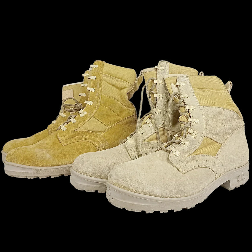 Similar to jungle boots, these have slightly more ankle protection with the continuation of suede (compared to nylon strapping) up and across the mid-upper of the boot. These were designed with resistant soles (chemical, anti static) that are firm yet flexible.