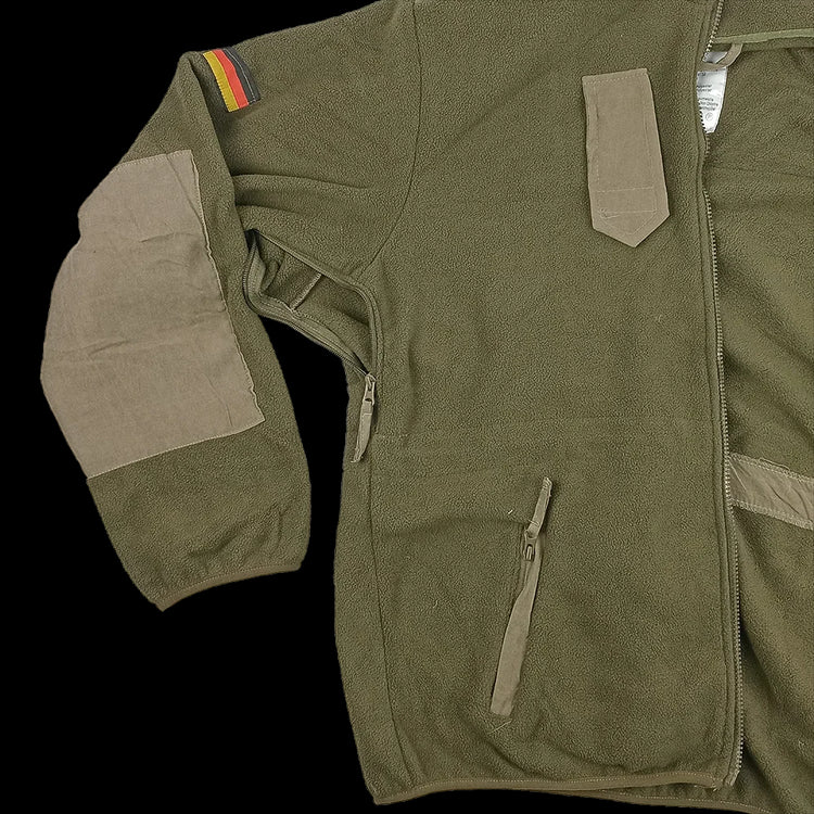 The German Army fleece jacket is a durable, high-performance layer designed for soldiers in the Bundeswehr and now available for civilian use. Crafted from warm, breathable fleece with reinforced shoulders and elbows, it offers long-lasting comfort and rugged reliability. Originally issued to troops for field and training operations, this jacket combines durability with everyday wearability. In excellent condition, it’s perfect for outdoor adventures, work, or casual wear. Super gemütlich.