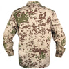 The German Army's choice of camouflage in arid/desert regions is the 3 colour Tropentarn pattern. The official name is drei Farben Tarndruck der Bundeswehr (three color camouflage of the Bundeswehr). Based on the established Flecktarn pattern, the Tropentarn is another popular camouflage pattern from the German army. This field shirt is comfortable, hardwearing and practical. Underarm ventilation is a highlight of these shirts and proves an ideal choice of battle attire for high humidity/warm climates.
