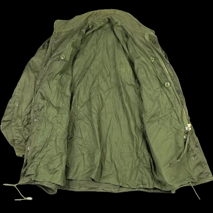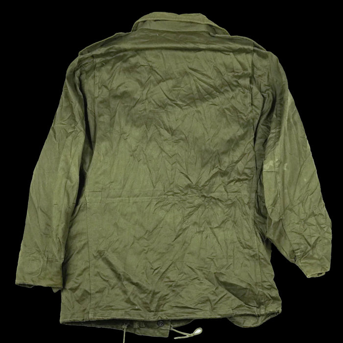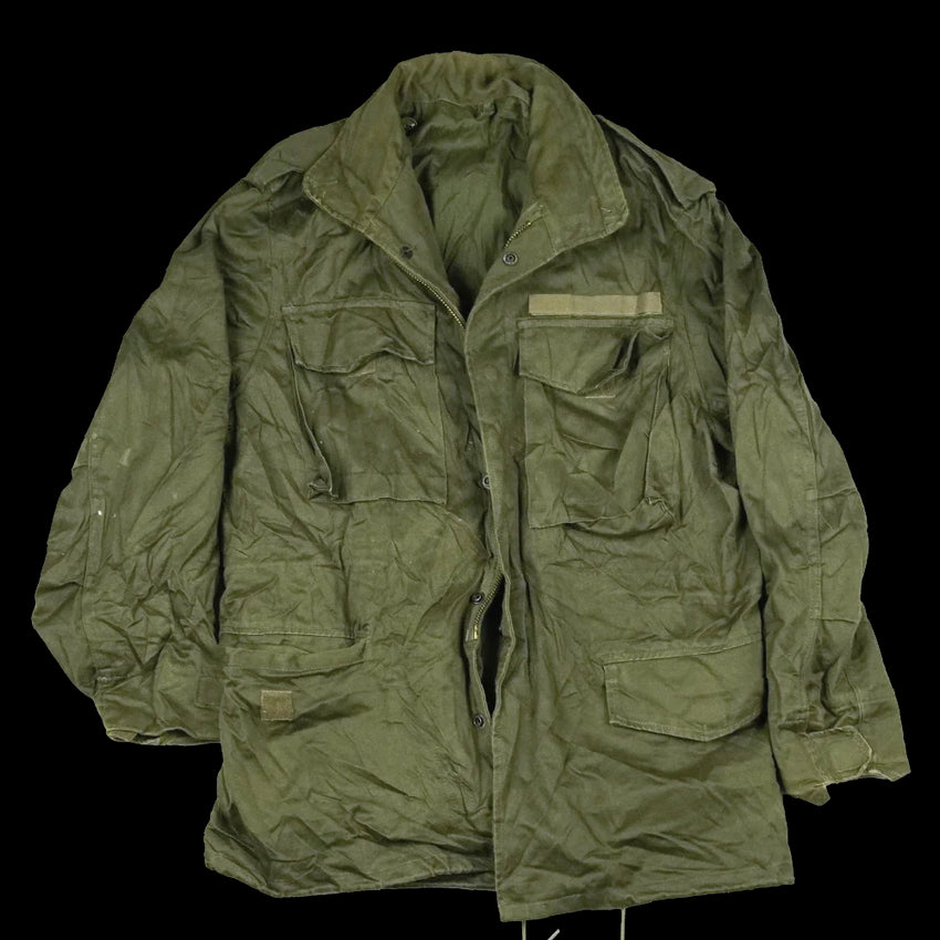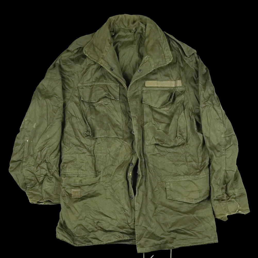 Greek Army M43 style field jacket in surplus condition. This is a mid-weight field jacket with a traditional M43-inspired cut and button-front construction.