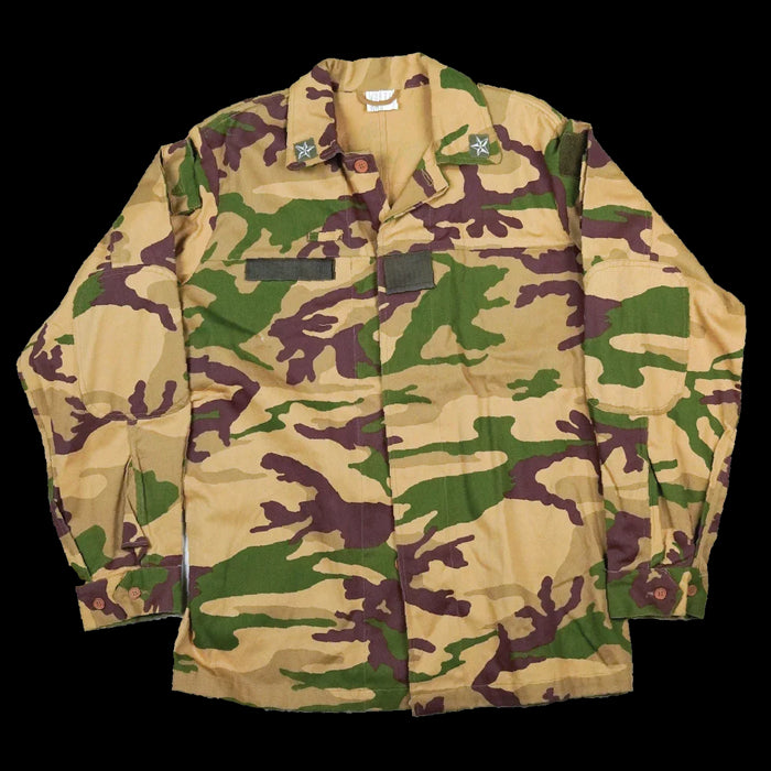 Italian Army desert camouflage field shirt with a button-up front. The shirt features reinforced shoulders and elbows, multiple hook & loop pockets, and underarm vents for airflow.