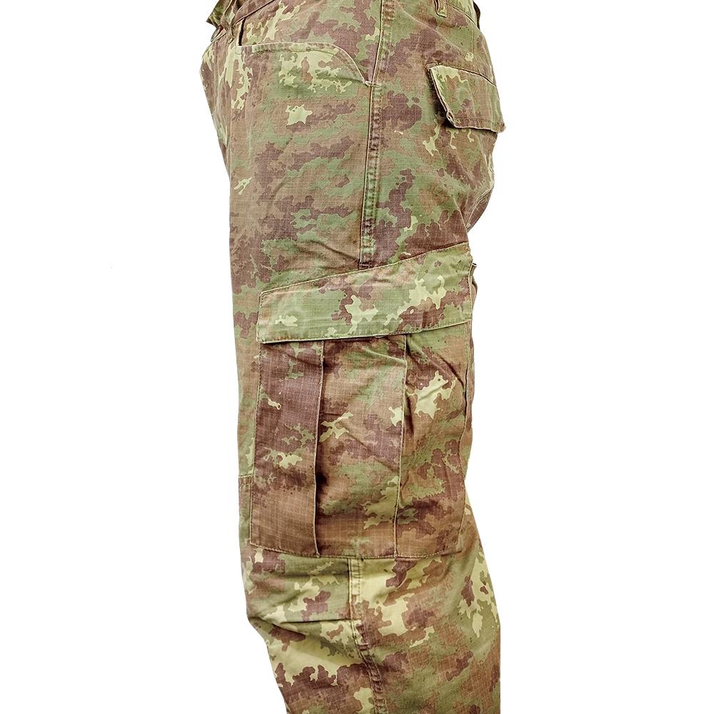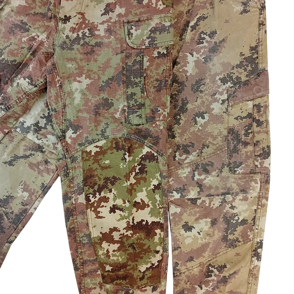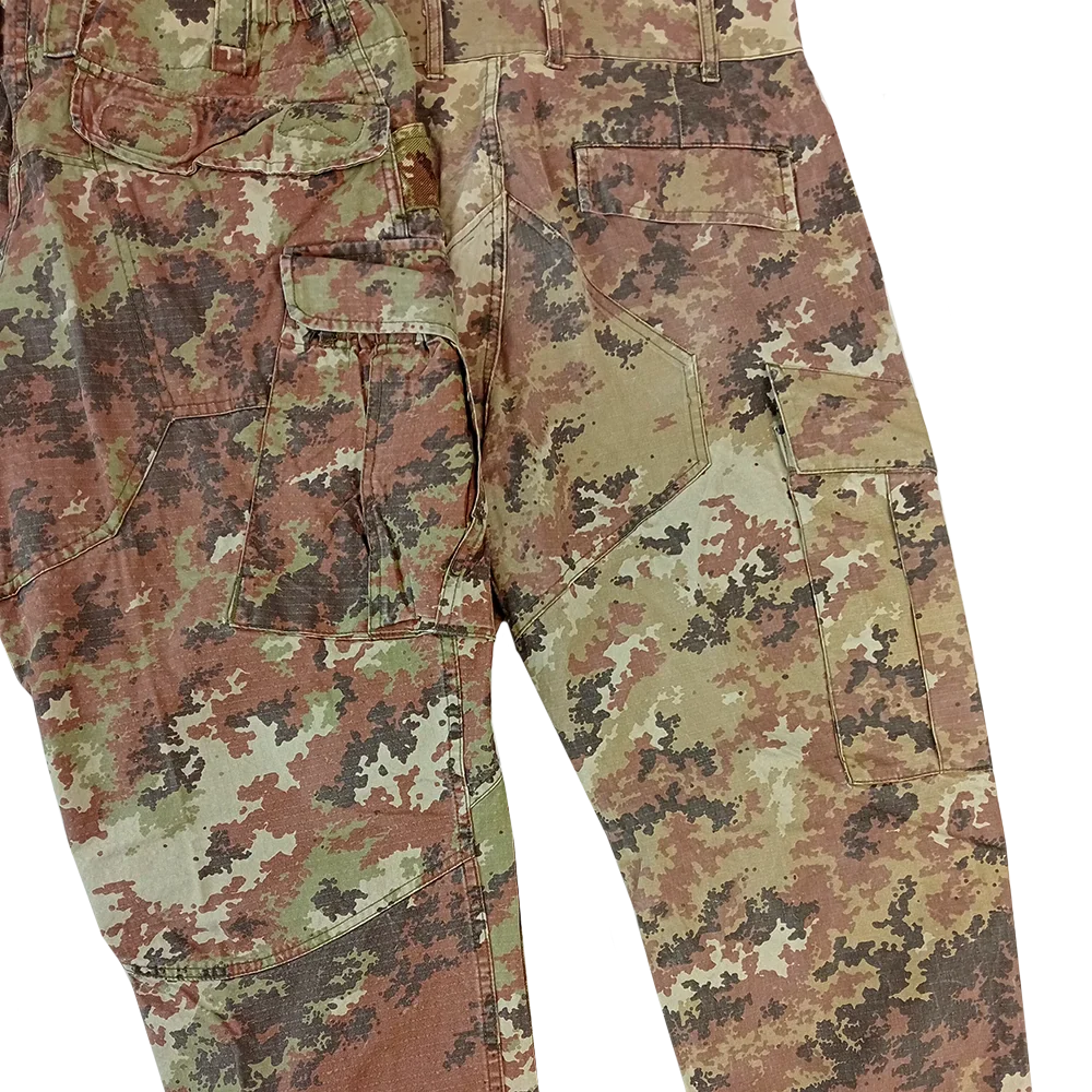 Vegetato is the current camouflage of the Italian military. Many variations of it exist, some intended and some perhaps accidental - Italy seems to have outsourced most of its production to various Romanian factories. The majority of what we have received is in the original green & brown pattern, but we seem to have the odd arid/half desert schemes mixed in. Either way, each one is definitely unique looking!