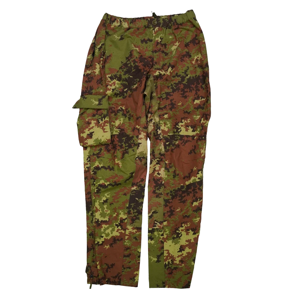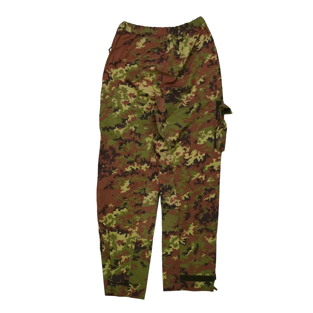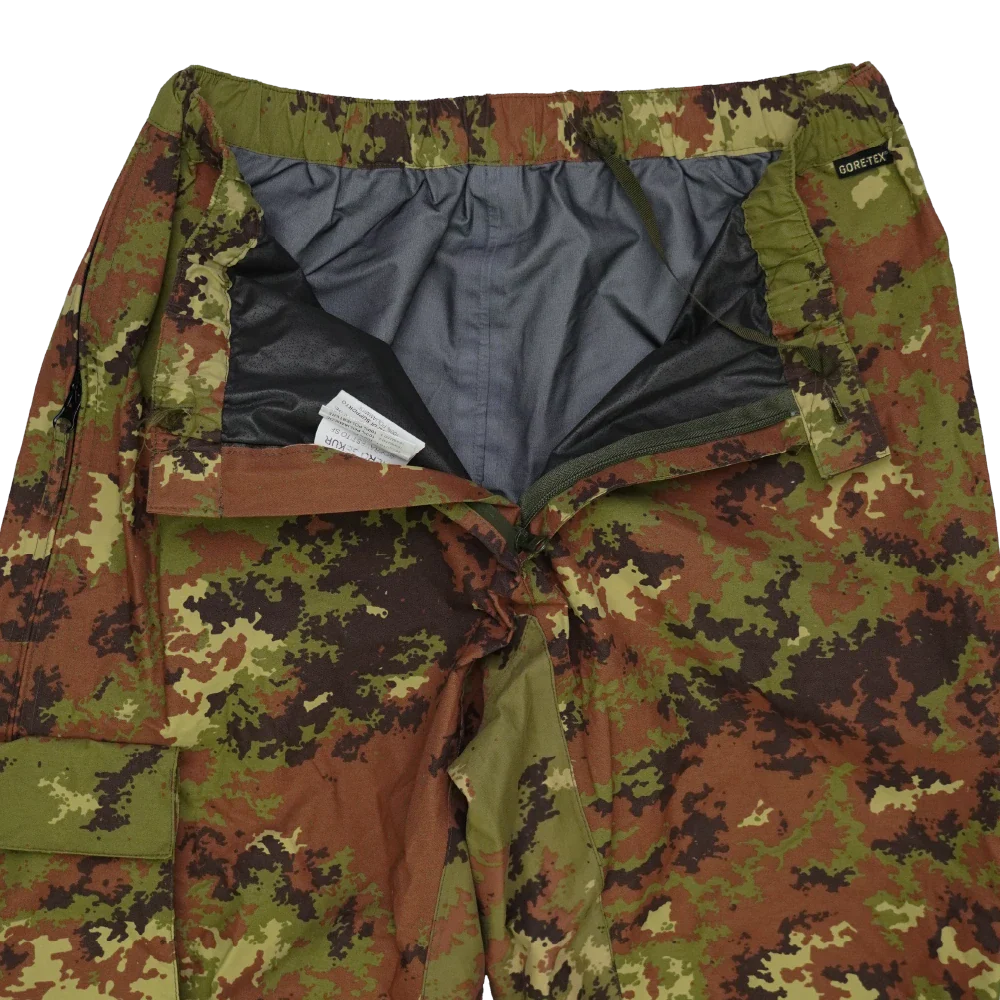 Italian Army Vegetato Gore-Tex trousers in used/very good condition. Made with a Gore-Tex membrane and finished in Italian Vegetato camouflage pattern.