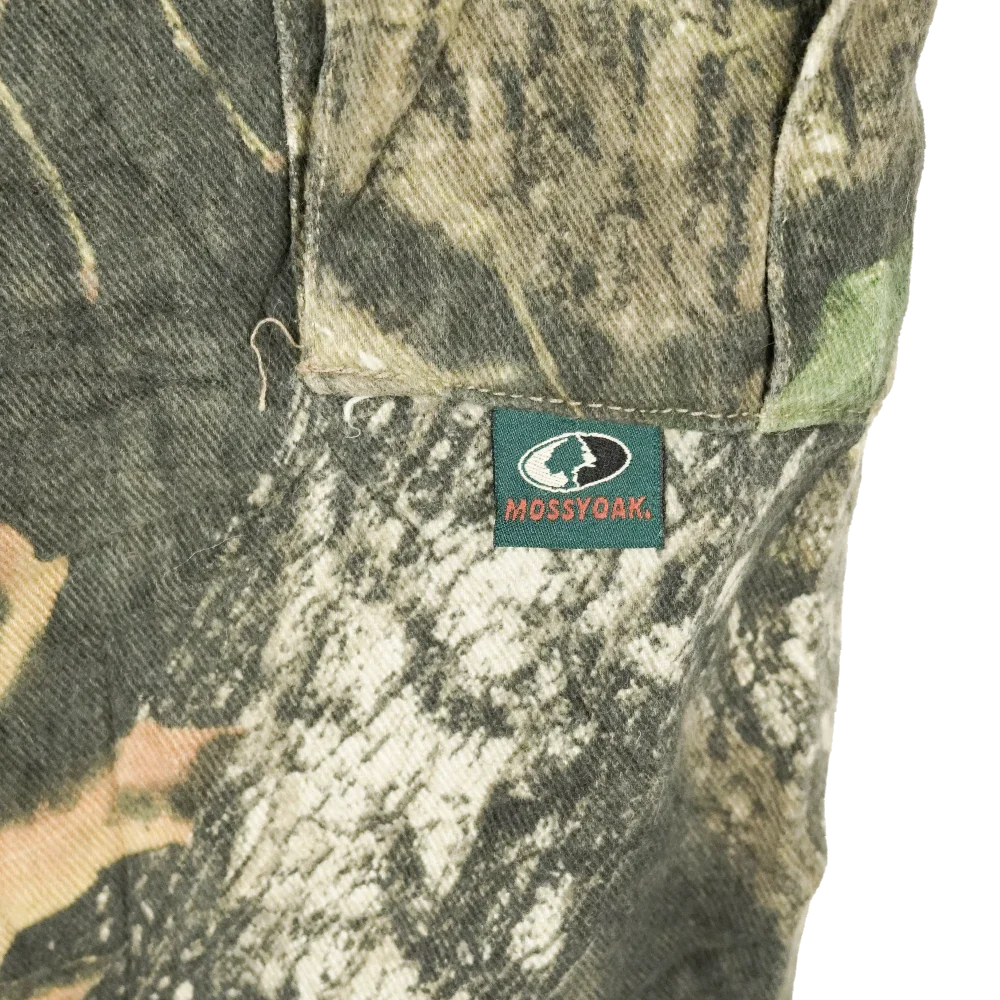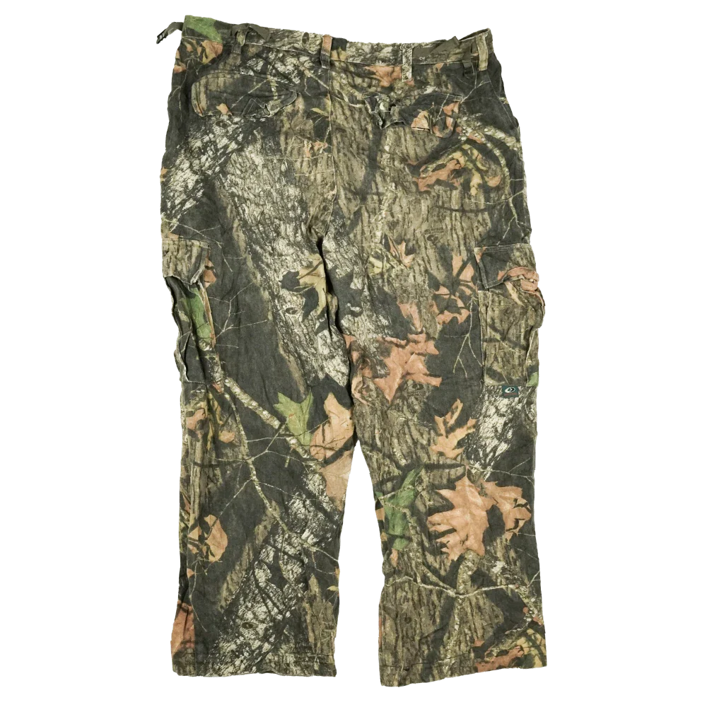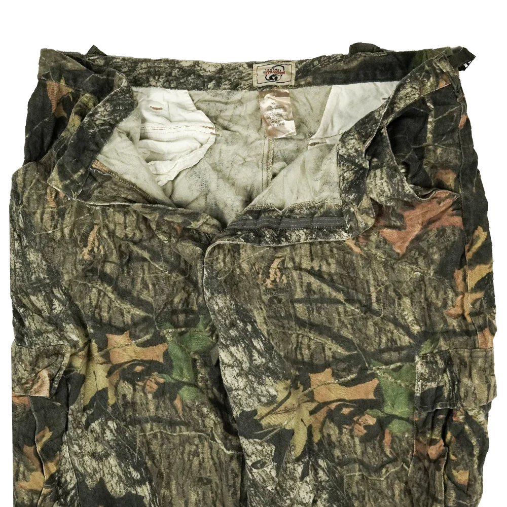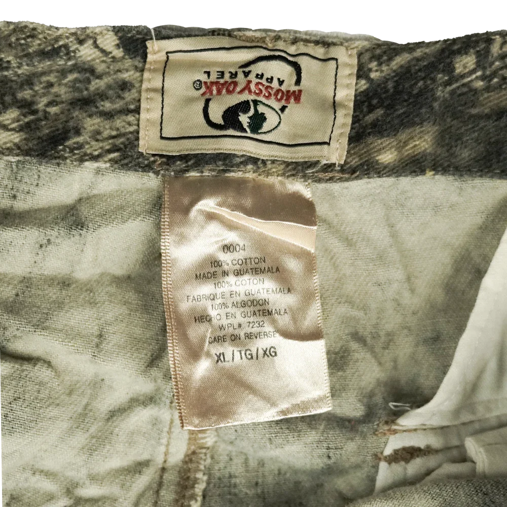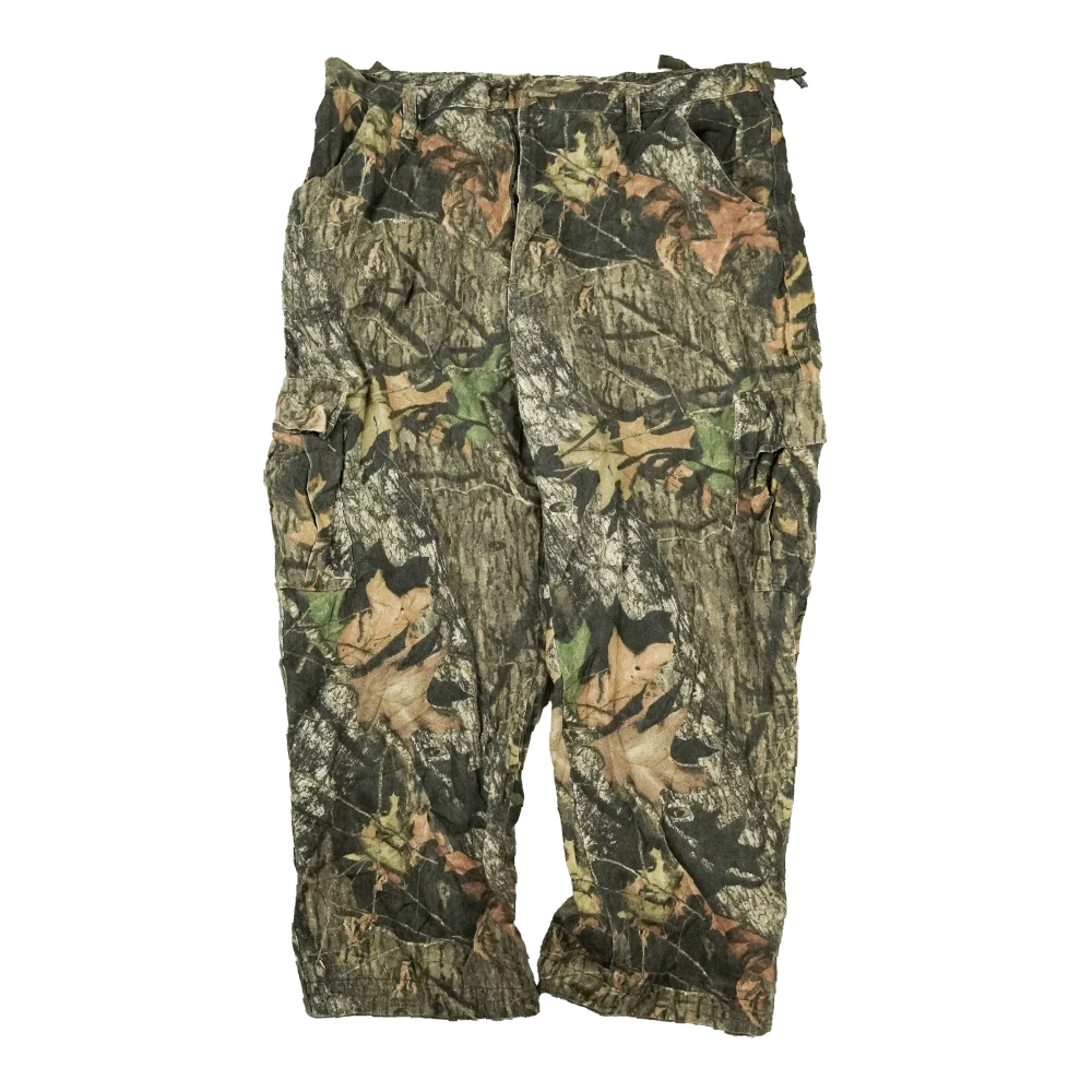 Commercial Mossy Oak BDU-style trousers in XLarge sizing. Features a Mossy Oak camouflage pattern and standard BDU cut. Condition is used and graded Very Good.