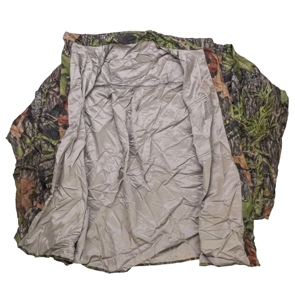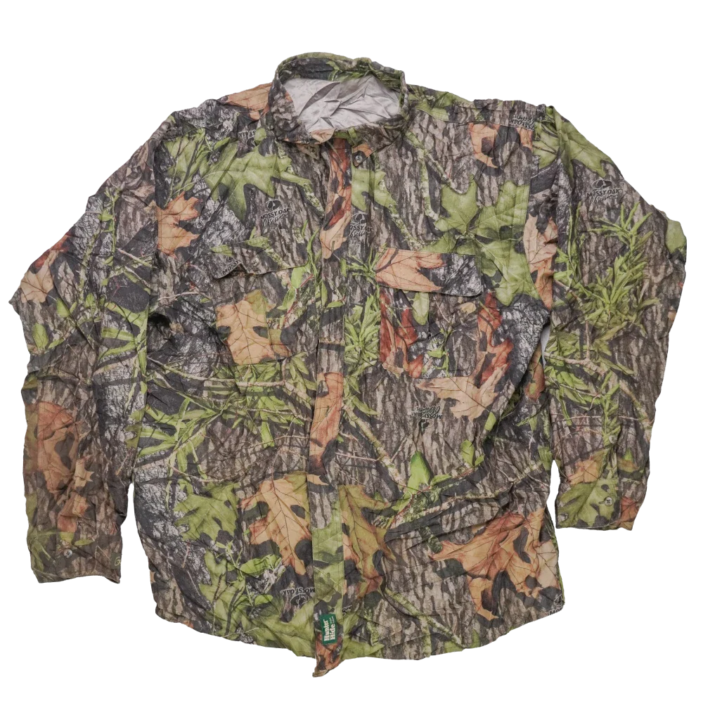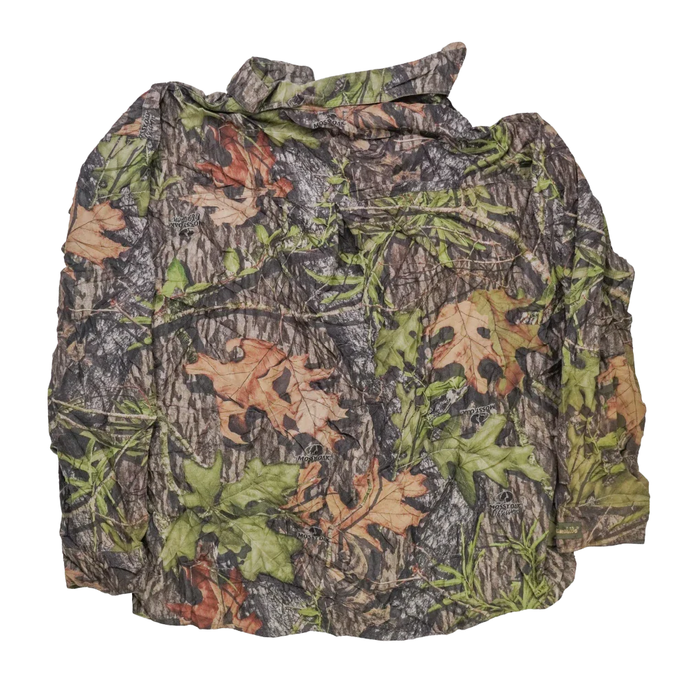 Commercial Mossy Oak Hunter Hide shirt in XLarge sizing. Chest measures 116 cm with a sleeve length of 62 cm. The shirt features the Mossy Oak Hunter Hide camouflage pattern with a button front and collared design.