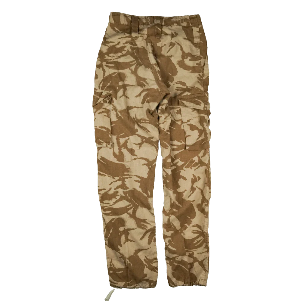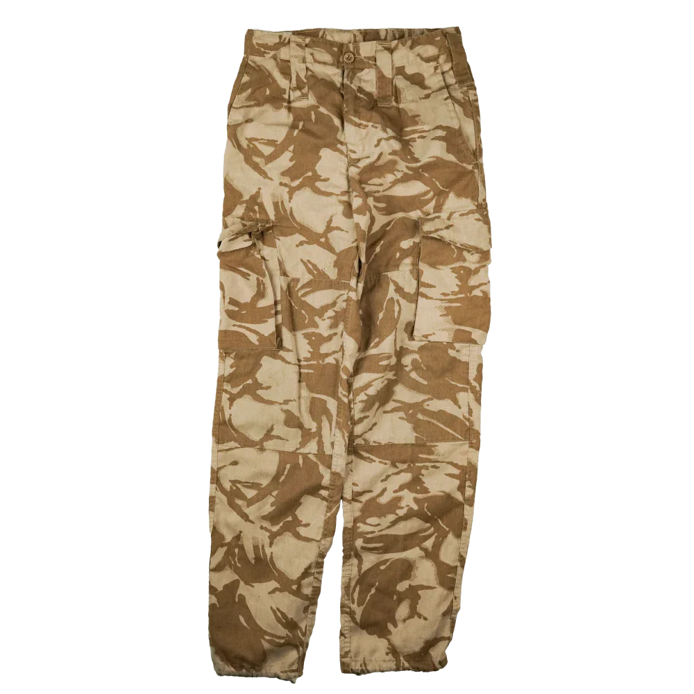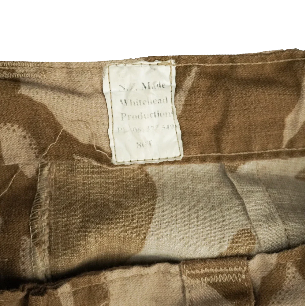 New Zealand Defence Force desert DPM trousers in the standard issued cut. Finished in desert DPM camouflage with a button fly and belt loops.