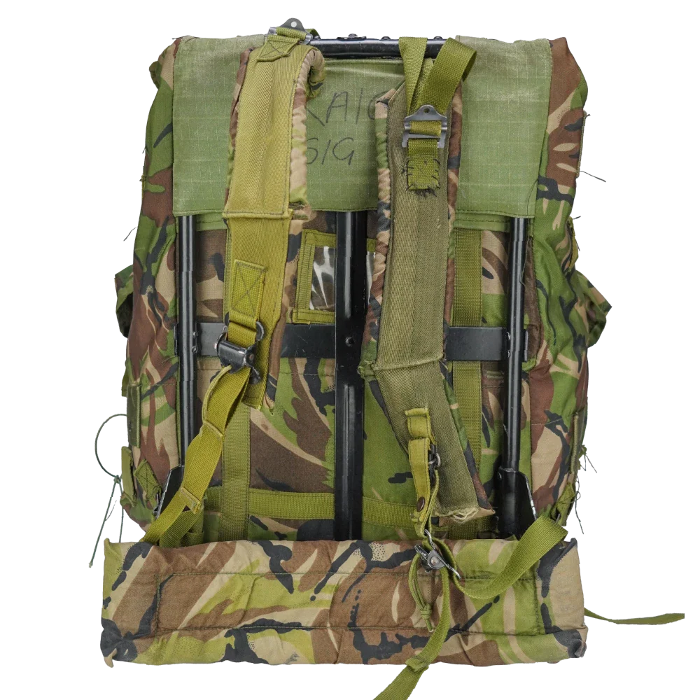 NZ Army ALICE pack in DPM camouflage, supplied with an external frame. Large capacity pack with a structured frame for load support and stability.
