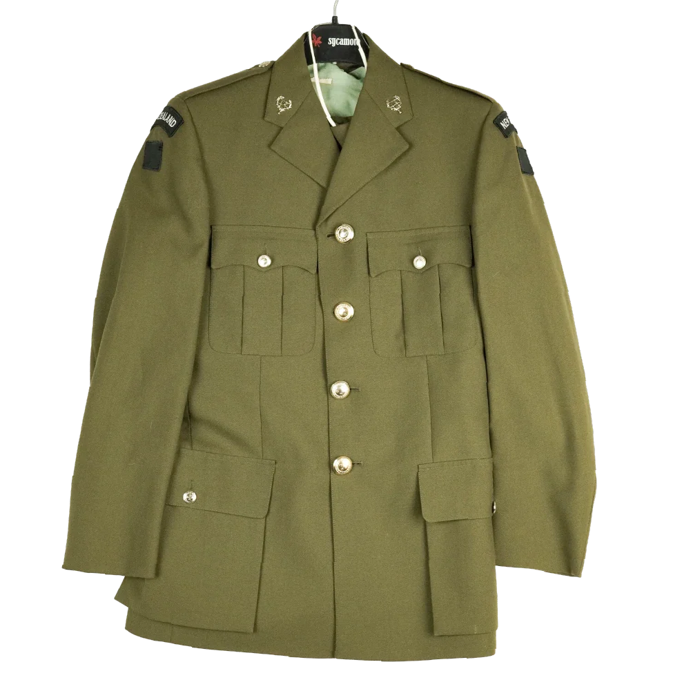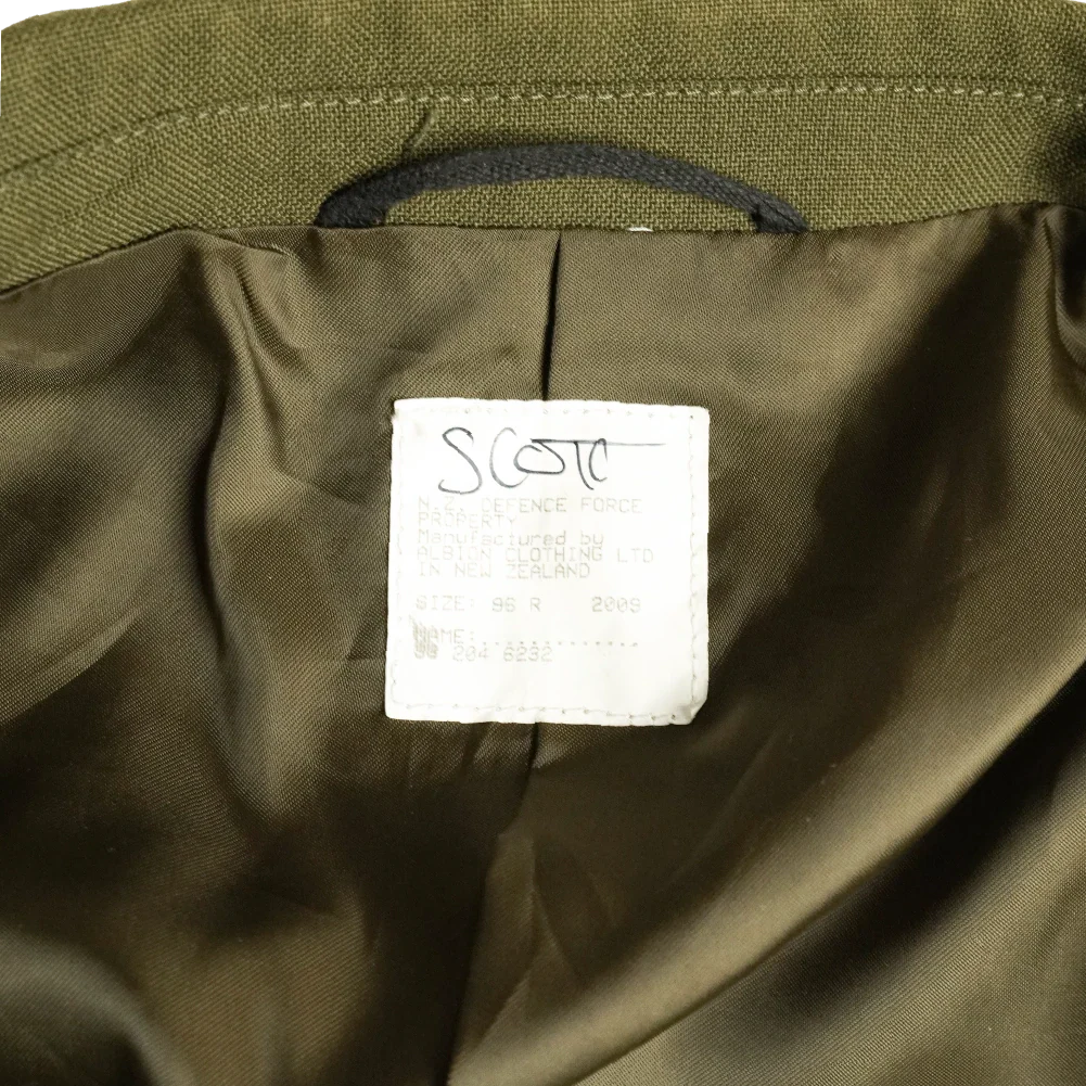 New Zealand Army Territorial Force RNZAC service dress uniform set. This set includes a jacket, shirt, trousers, and tie. Late 2000’s issue.
