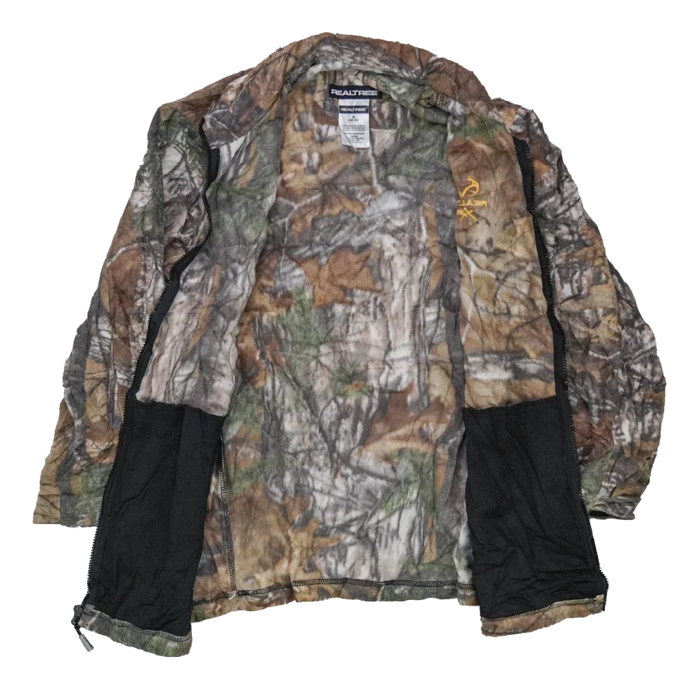 Lightweight fleece jacket in Realtree camouflage. Soft fleece construction with a simple jacket-length cut.