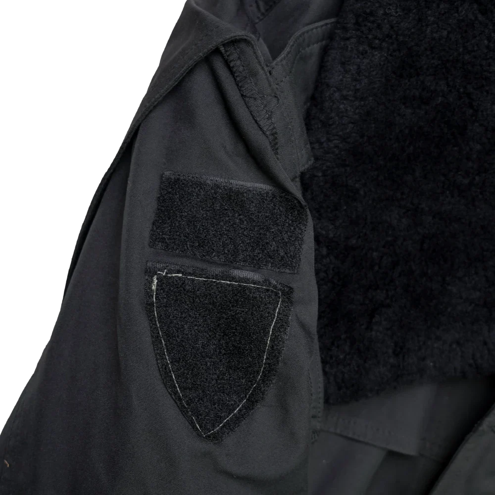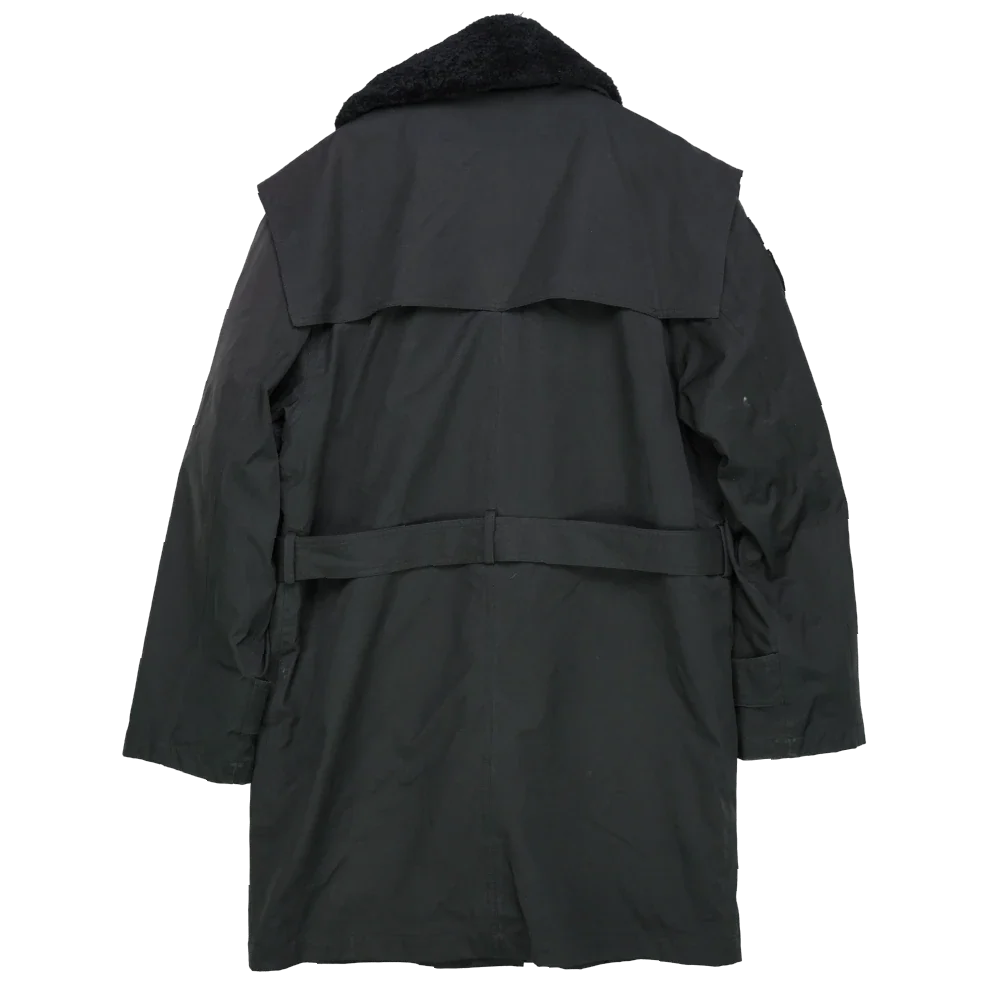 Romanian Naval Academy black parka in surplus condition. Classic longer-length parka cut in black.
