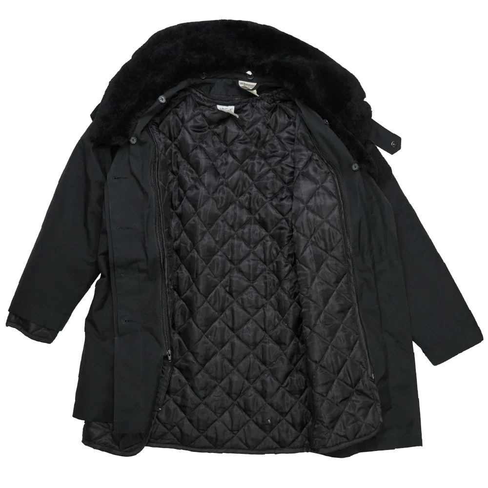 Romanian Navy waterproof trenchcoat in 2XSmall. Long-length design with a waterproof outer shell and detachable liner.