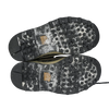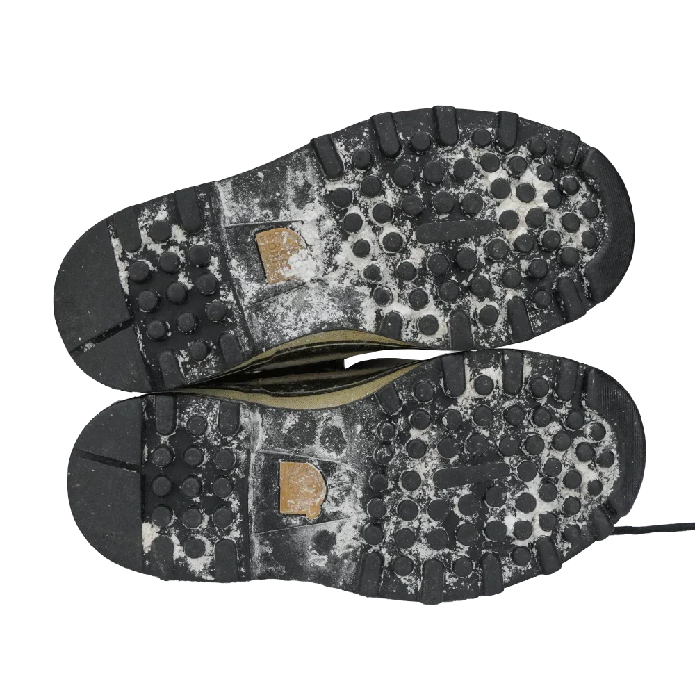 - Thick lugged outsole with circular tread pattern