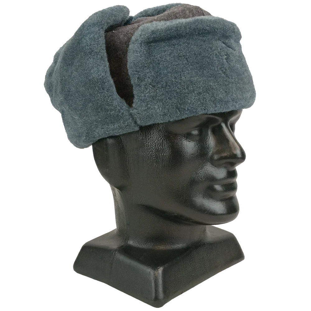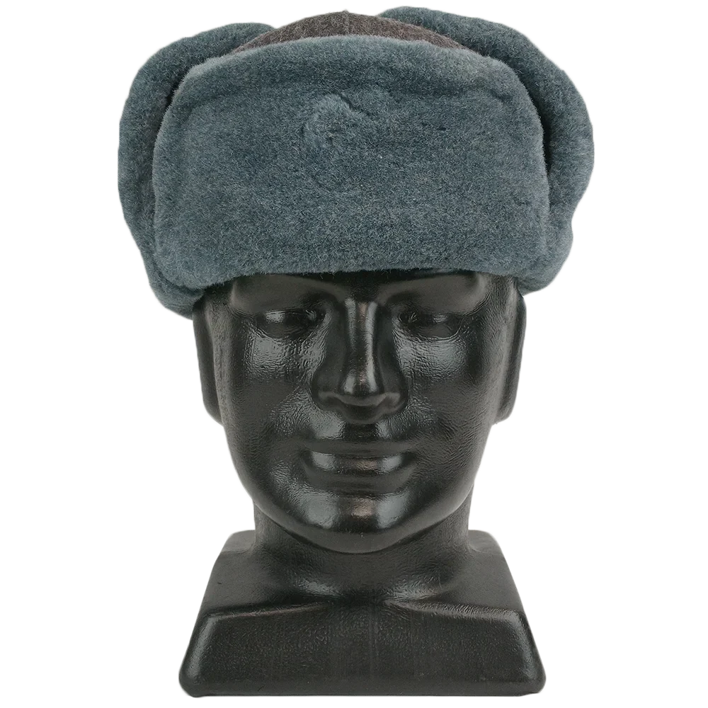 Stay toasty in shapka! These ushanka winter hats are perfect for those in very cold conditions and even collectors. The fuzzy outer may be faux fur but the density of fibres makes this quite a hefty hat. These ushanka have a felted wool upper, insulating padding to the cotton interior and long ear flaps that can be worn up or down. These ones do not have any insignia, comrade.