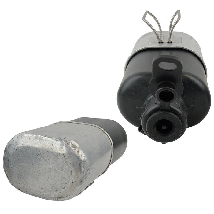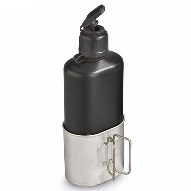 Swiss Field Issue Canteen with cup! Tough 850 mL poly canteen, with rubber gasket screw-top NBC lid that can be used with gas masks.