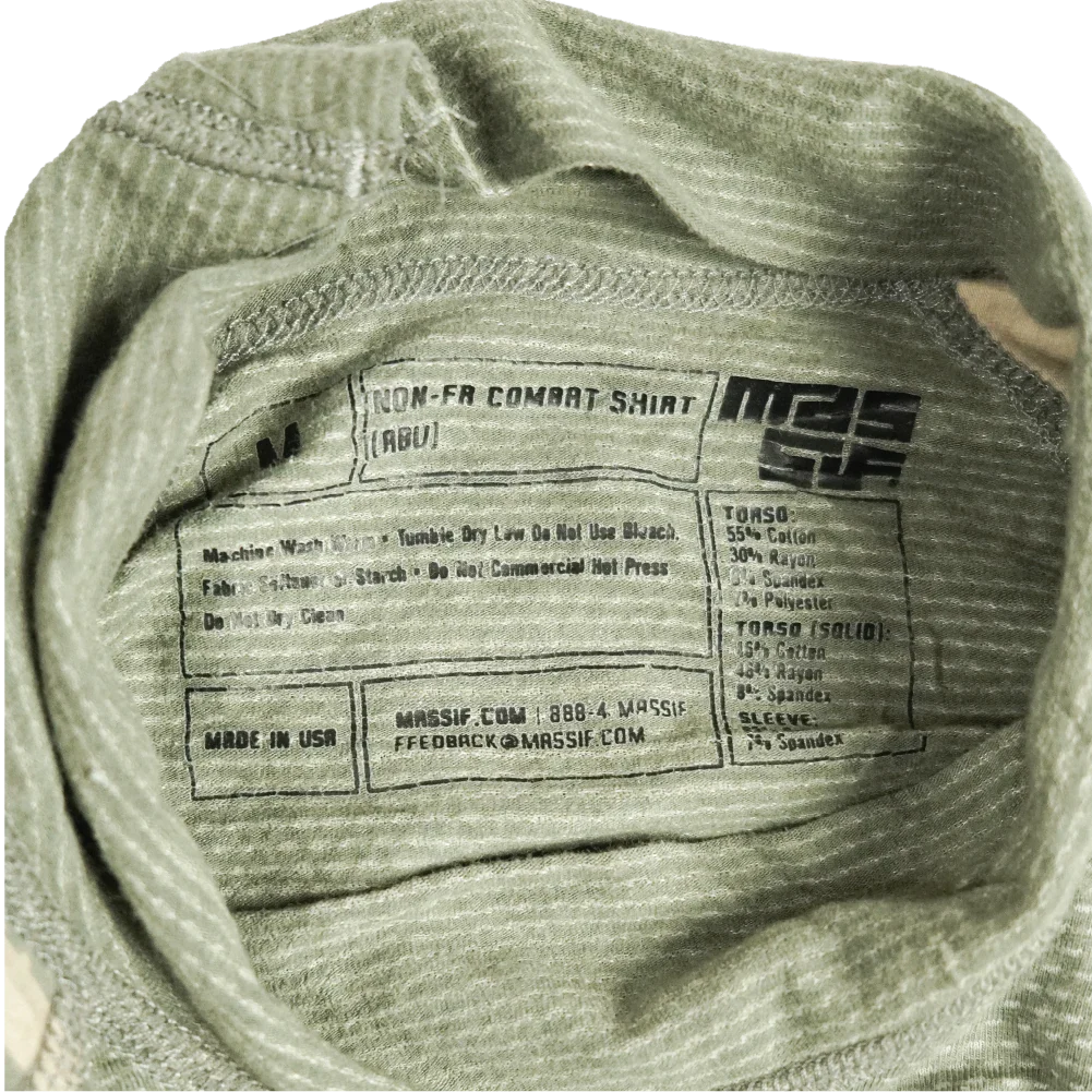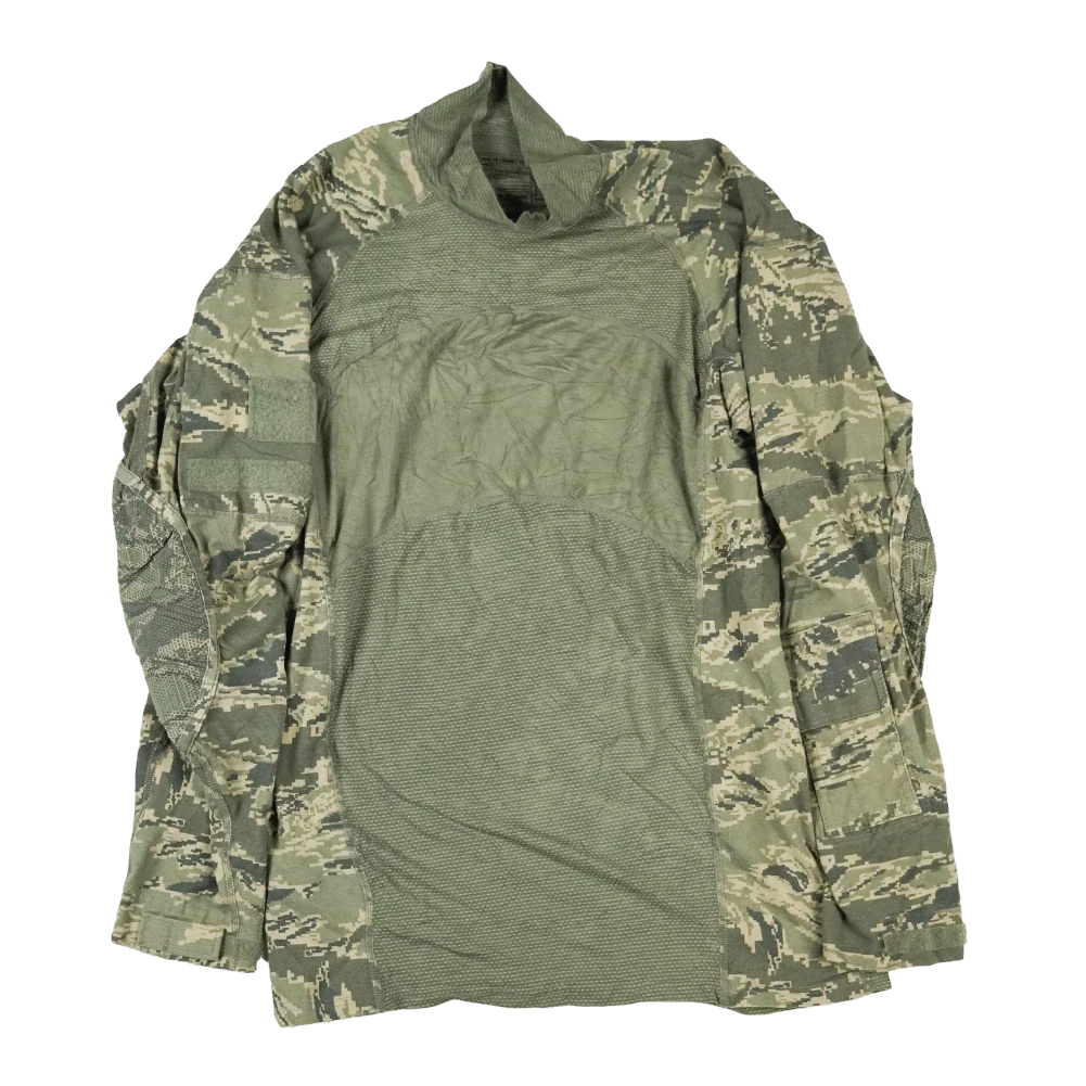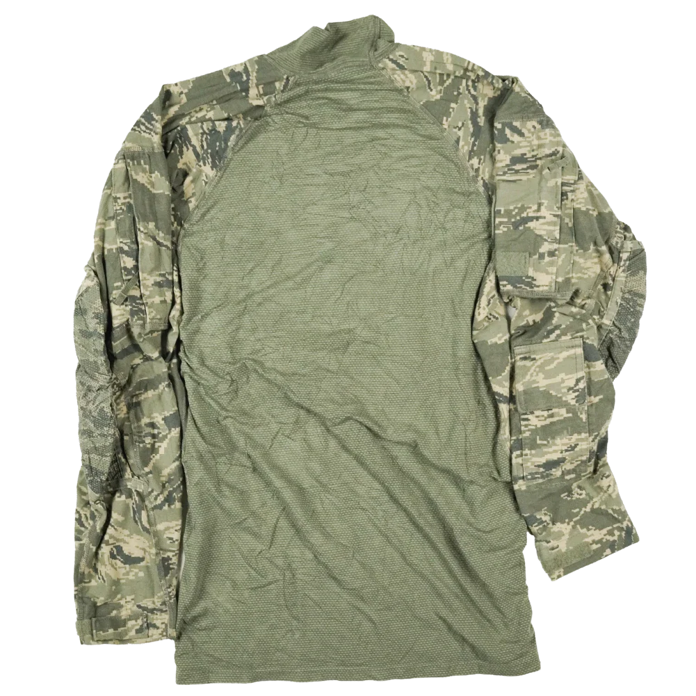 US Air Force UBAC shirt with a moisture-wicking torso and reinforced elbow panels. Features zip-closure sleeve pockets with areas for attaching insignia and hook-and-loop adjustable cuffs. Manufactured by Massif.