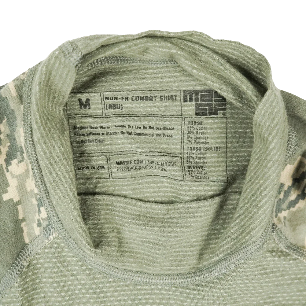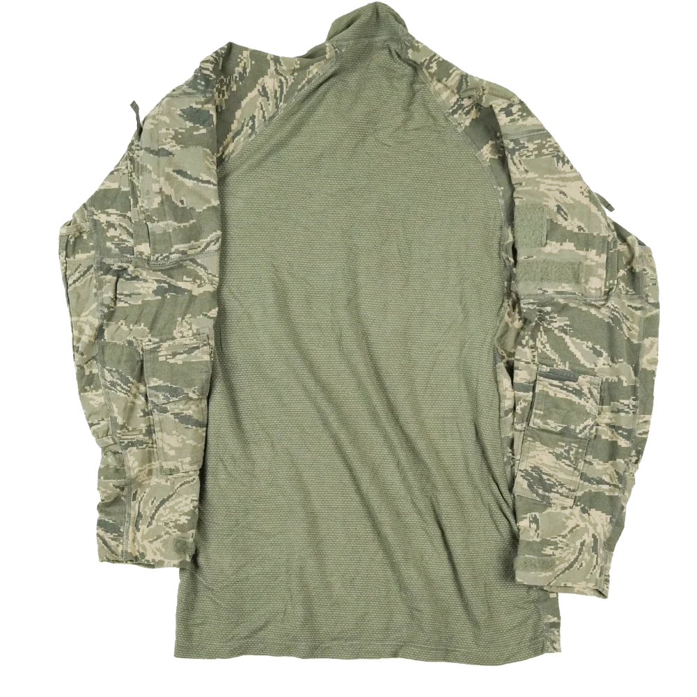 US Air Force ABU UBAC shirt with a moisture-wicking torso section and reinforced construction. The shirt features zippered sleeve pockets with areas for attaching insignia and reinforced elbows.