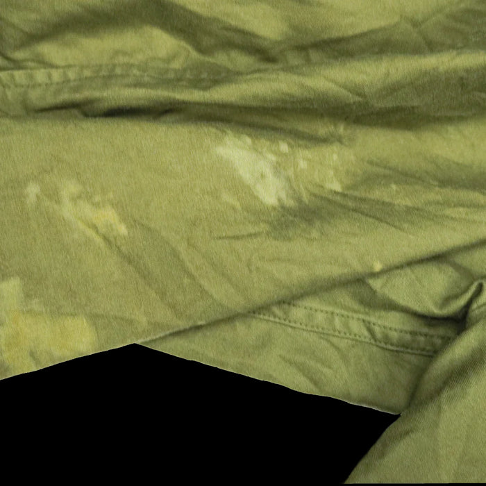 This example shows wear. There are stains on both sleeves and one button is missing from each cuff.
