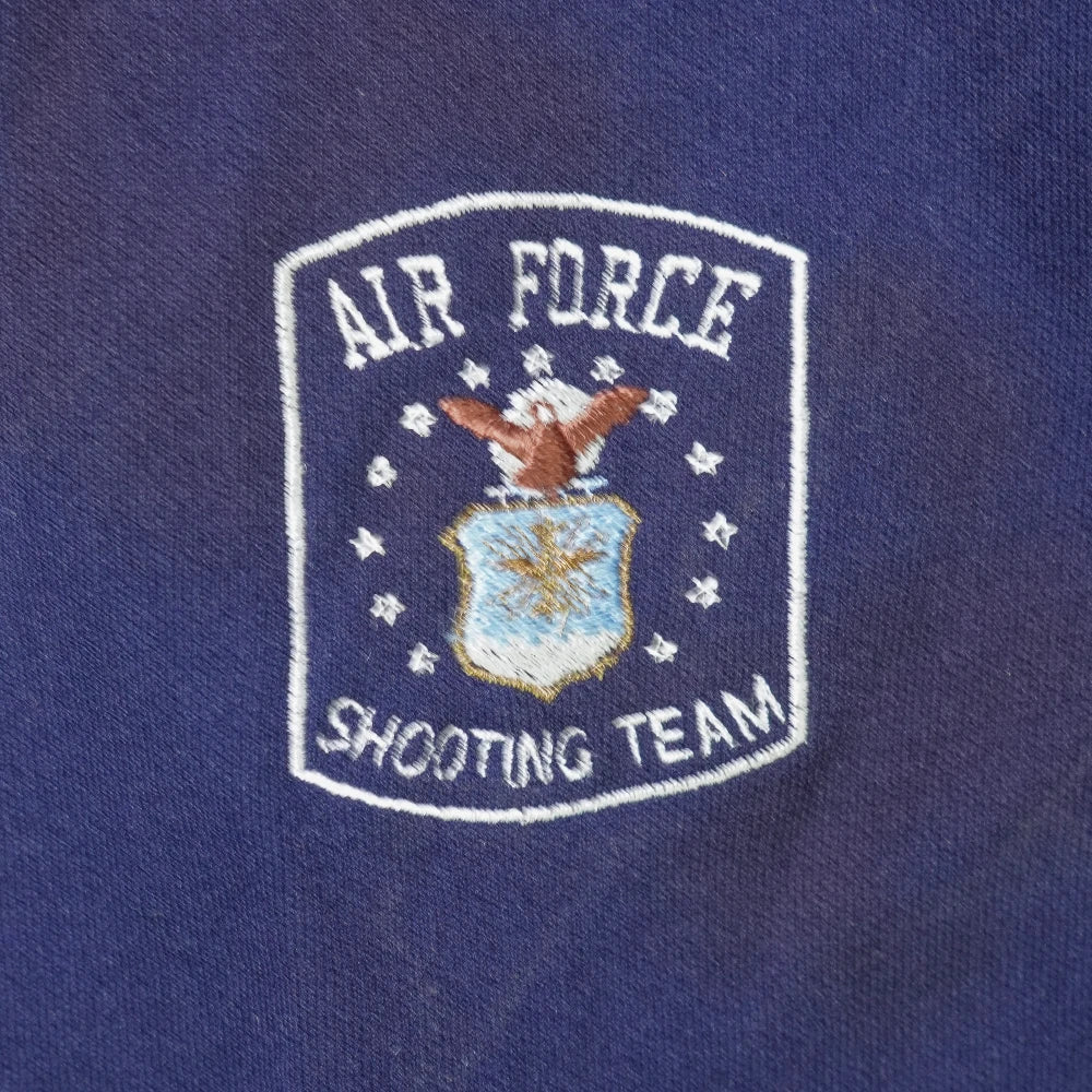 US Air Force Shooting Team jacket in size Large. Features printed team graphics and is manufactured by Champion in the USA. Dark stains are present on the front, possibly from the print.